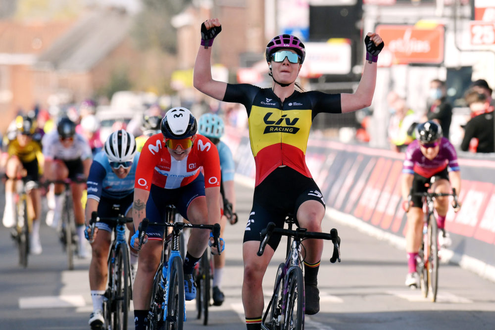 Chloe Hosking sprinted onto her first podium with Trek-Segafredo, finishing in third place in La Samyn Tuesday. Lotte Kopecky (Liv Racing) timed her move perfectly to take the win and Emma Norsgaard (Movistar), the first to jump in the slightly uphill finish, held on for second.