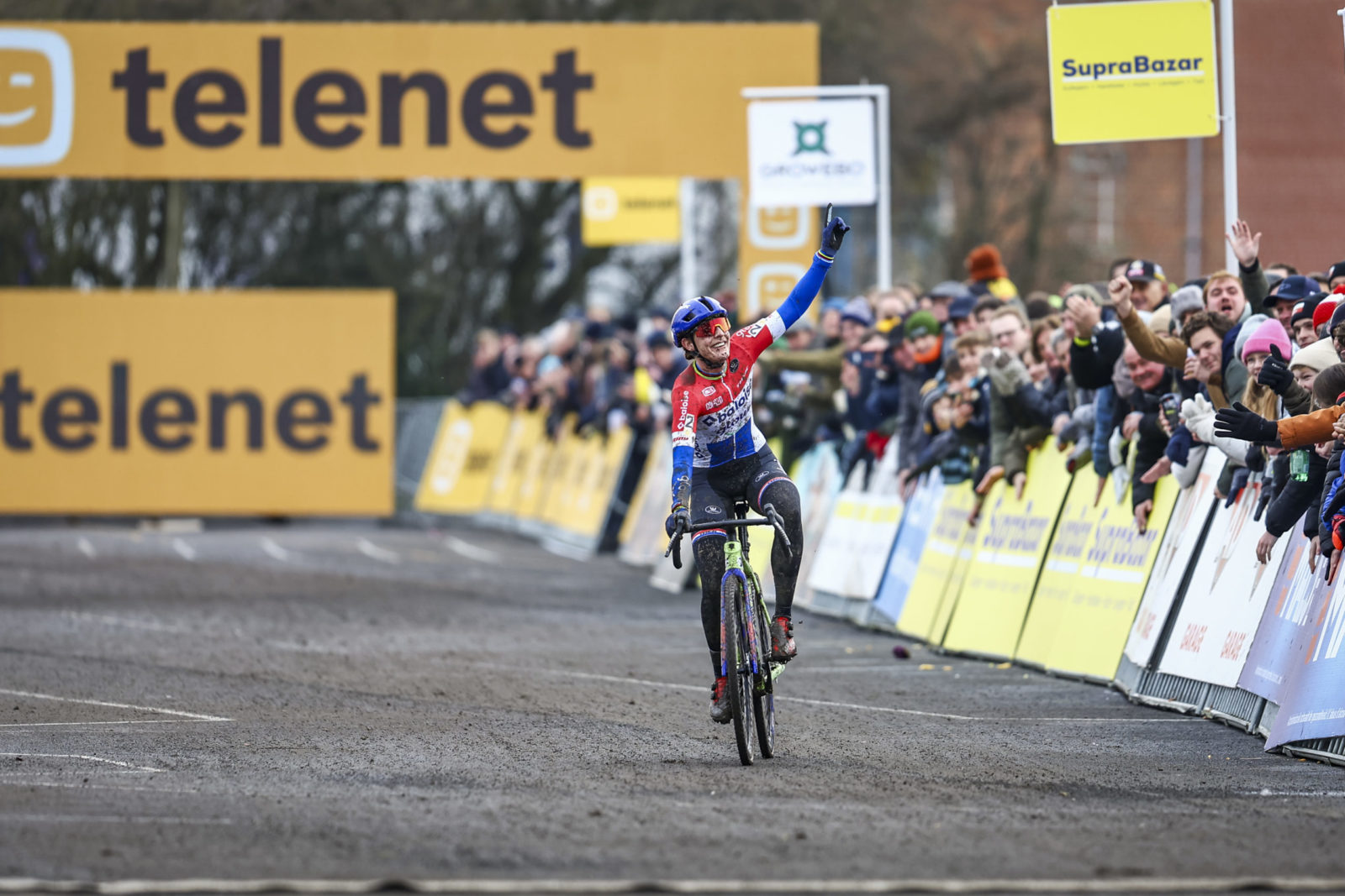 Thibau Nys in action at GP Sven Nys in the European Champion's kit. | BELGA PHOTO / DAVID PINTENS