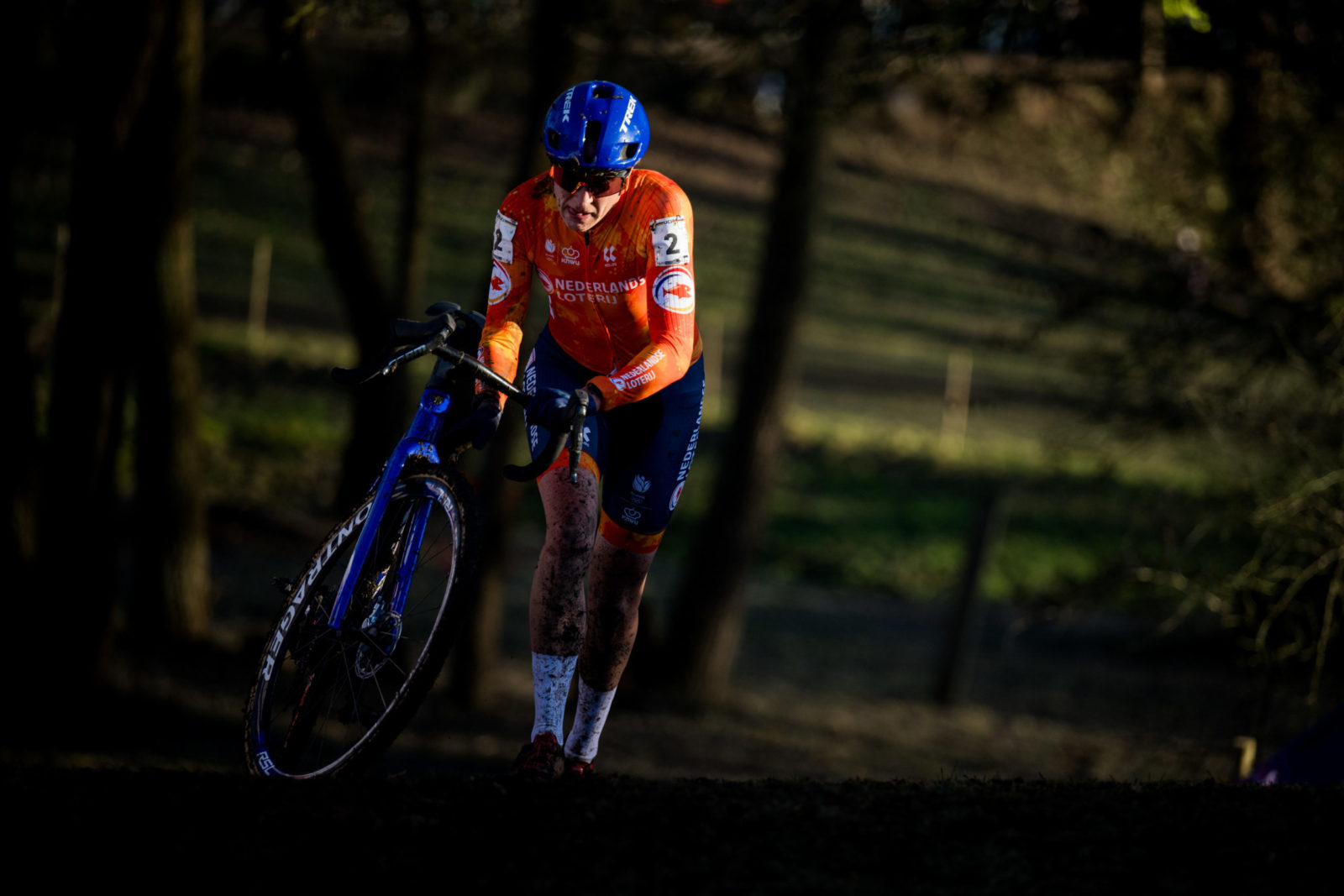 Still, despite all her accomplishments, Brand will likely remember Saturday as bittersweet. By midway through the six-lap race, she and Van Empel had sloughed off Puck Pieterse from what had been a lead trio, and established themselves as the only two riders with a chance to win. Throughout the race, they each thrived in distinct sections of the course, with Van Empel rocketing up the steep uphill segments after the pits, and Brand gaining ground on the descents and longer flat sections. The race evolved into a battle of who would be able to make the most of their advantages on a classic course.