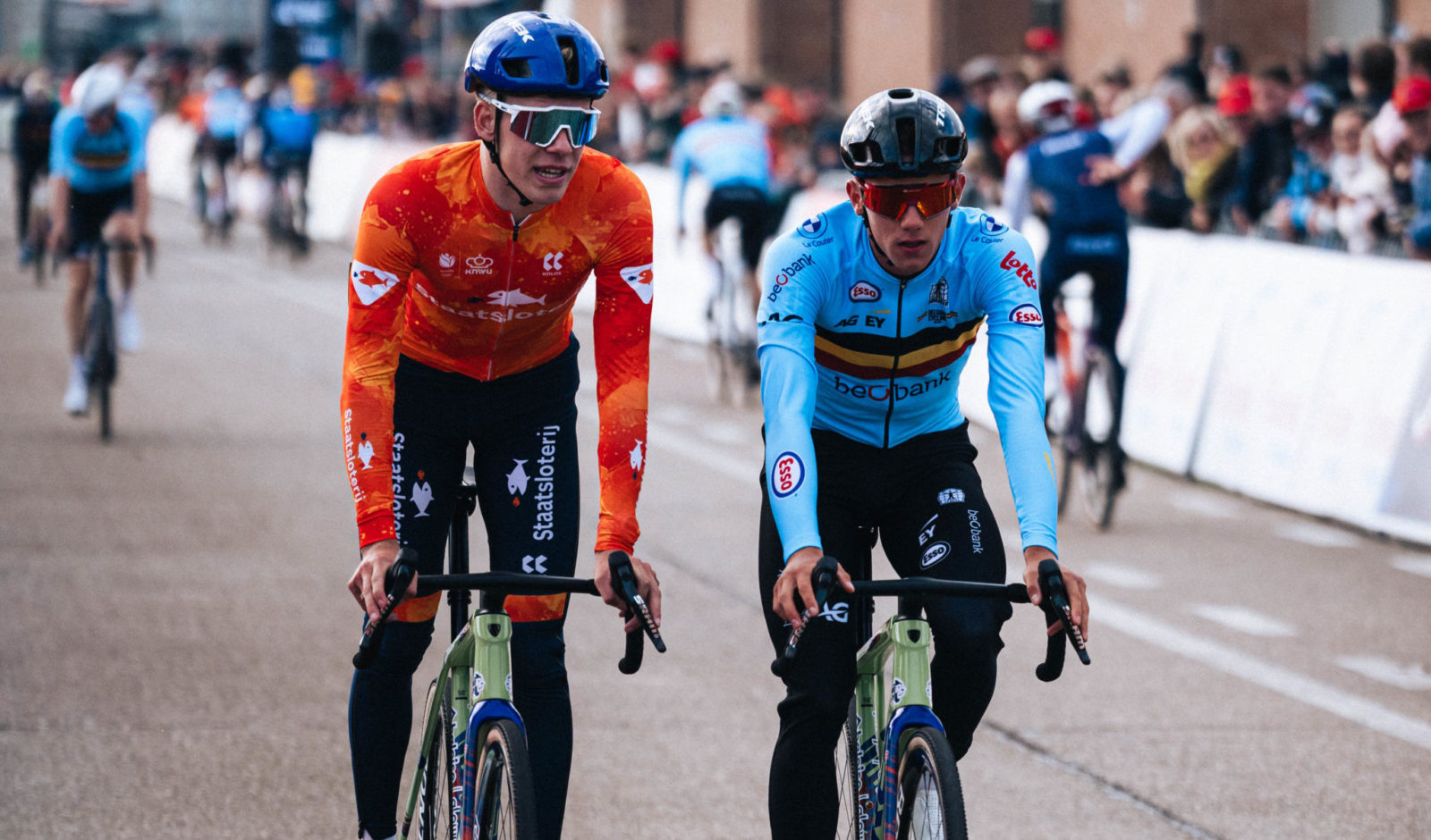 Pim Ronhaar (left) and Thibau Nys (right) getting ready ahead of the men's elite European Championship. | Photo: BlueFrame Media