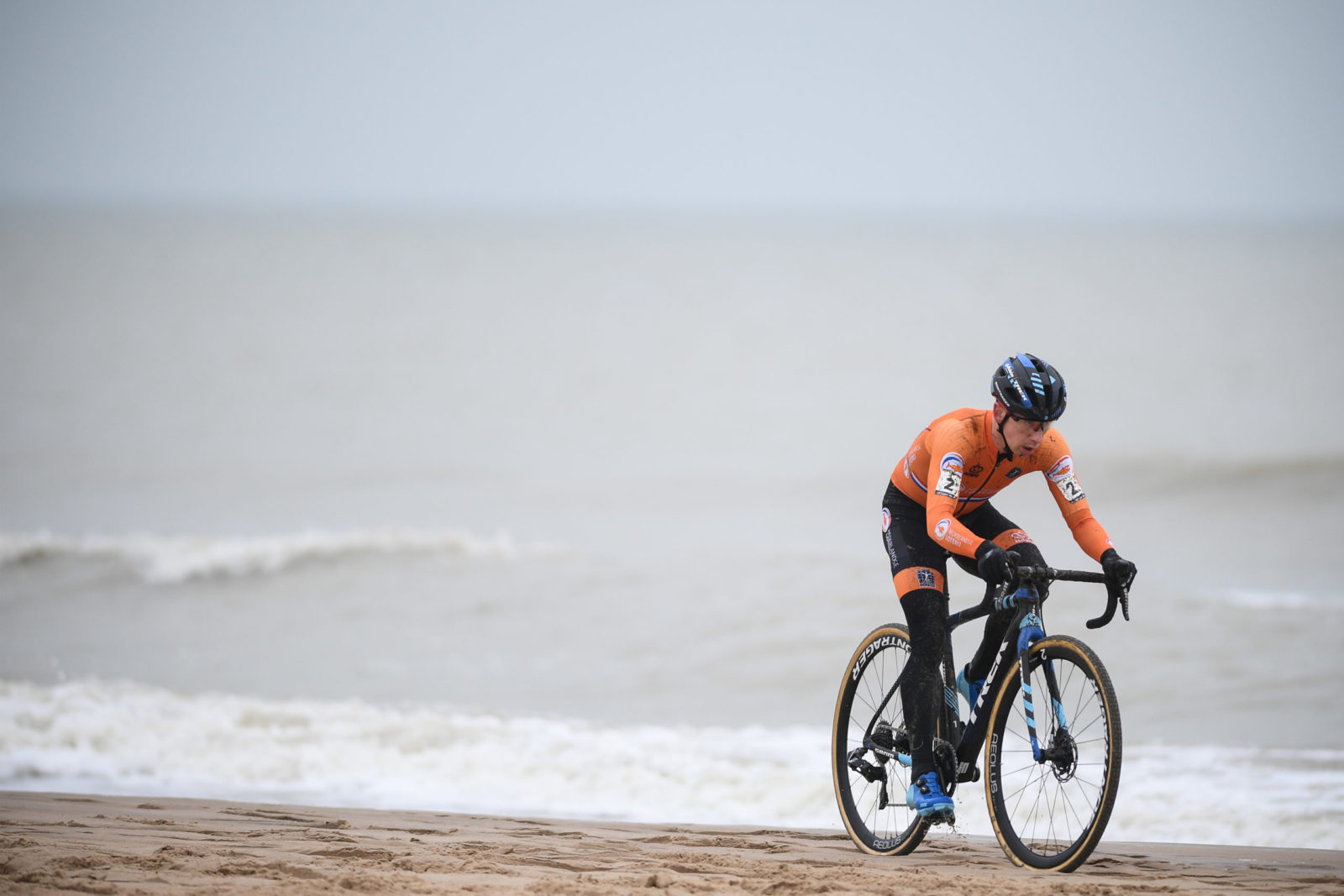 Aerts’ strategy worked to perfection. He took created a gap to fourth place on the stretch of sand just before the steep bridge climb on the first lap. Then on Lap 2, he surged on the beach once again, taking a nearly 30-second lead on his chasers by the time he returned to the climb. Though Pidcock would use the bridge and grassy technical sections to eat into Aerts’ advantage, he couldn’t sustain the effort long enough to threaten Aerts’ medal.