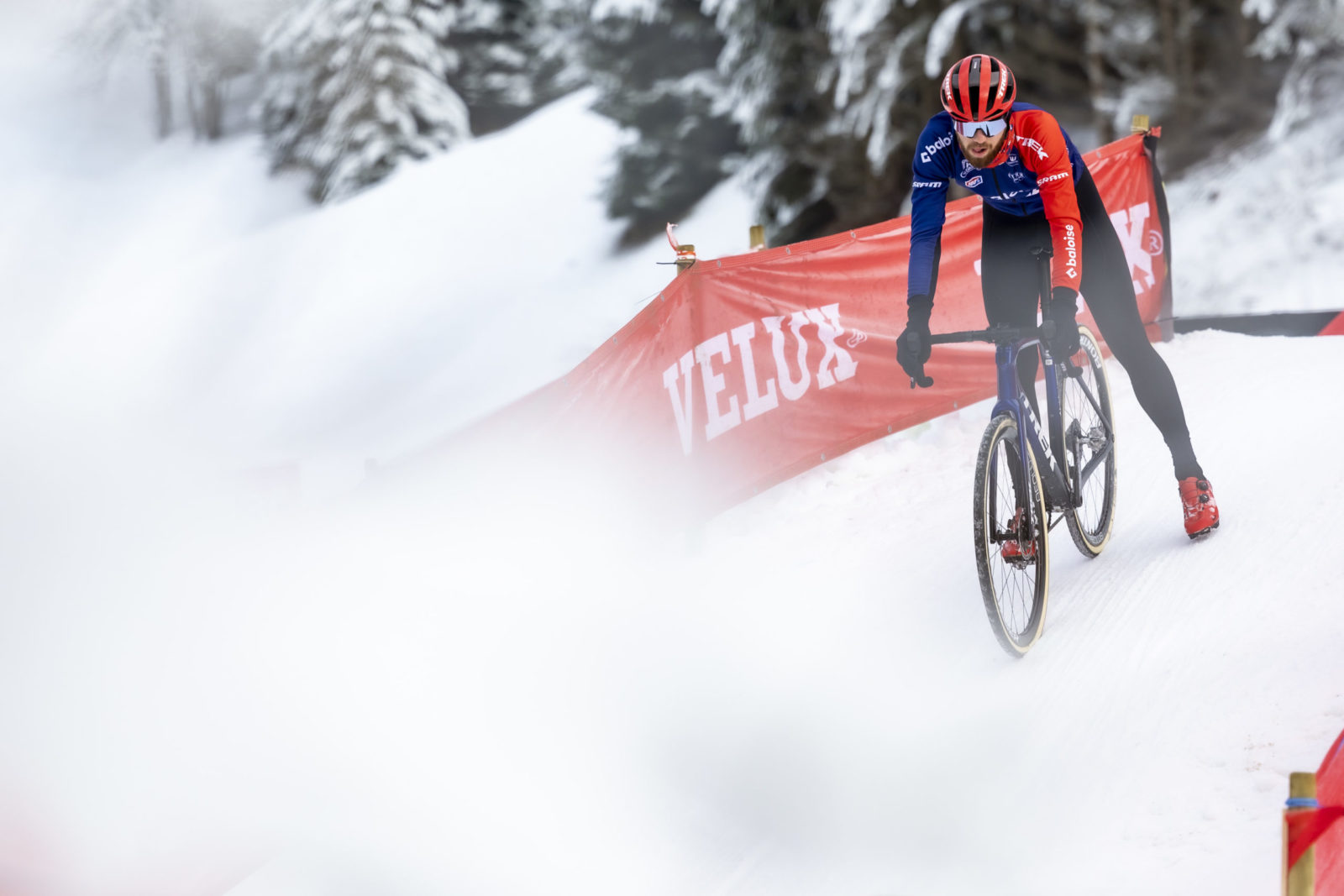And his win came in emphatic fashion. Nieuwenhuis led the race from start to finish, steadily powering his way through a snow-covered course in Val di Sole and adding time between himself and his rivals. He finished 1:01 ahead of second-place Niels Vandeputte.