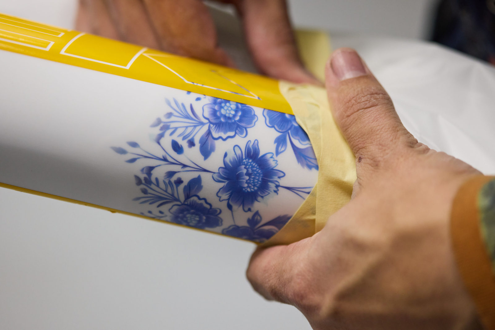 Lining up the details on Brandon Semenuk's 20th anniversary porcelain bike.
