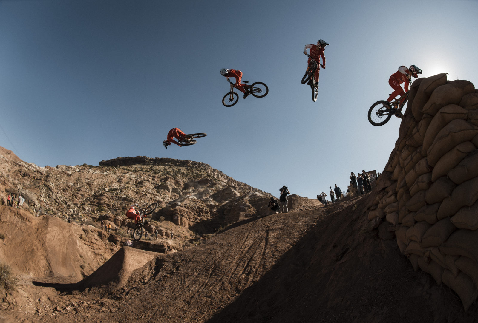 Rampage is the premier freeride mountain biking competition. Riders and their crews dug individually chosen lines in the week leading up to competition, carving through red, orange and white rock layers in the just outside Zion National Park in Utah.