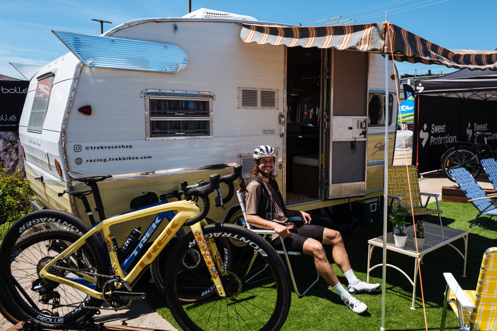 Though the racing was more competitive than ever, Reijnen said that he felt more relaxed in the days leading up to the start than in previous years. Not only did he have a better lay of the land and sense of the schedule, but the Trek Race Shop rolled out a hub space at the All Things Gravel Expo, complete with a retro trailer and fake turf, where Reijnen and staff could relax, and fans could come mingle and swap stories while being served coffee and beer.