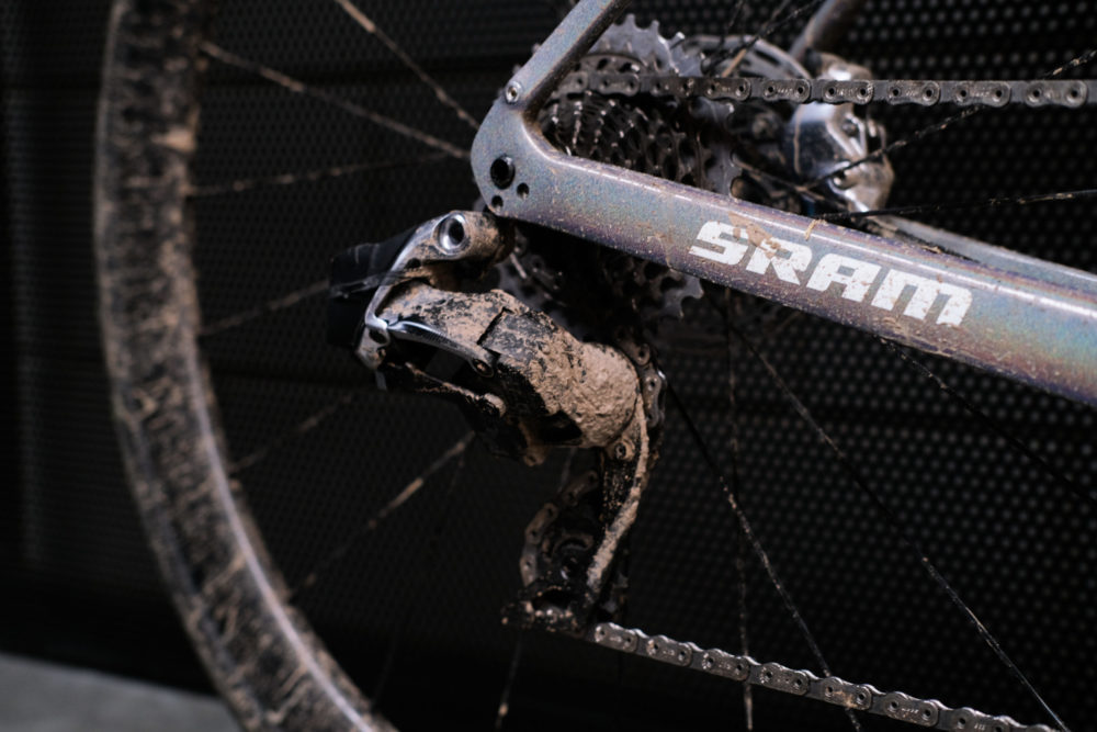 A 10-33 tooth cassette gave Lizzie plenty of choice over the cobbles. Smooth shifting and reliable braking courtesy of a SRAM Red eTap AXS disc groupset.