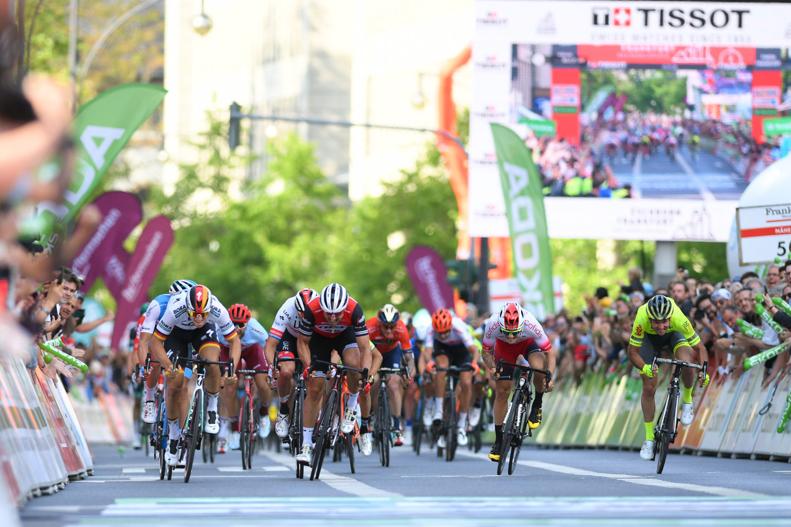 It was a thrilling finish that saw a five-man breakaway caught four kilometers from the end followed by a big fight for positioning in the streets of Frankfurt.