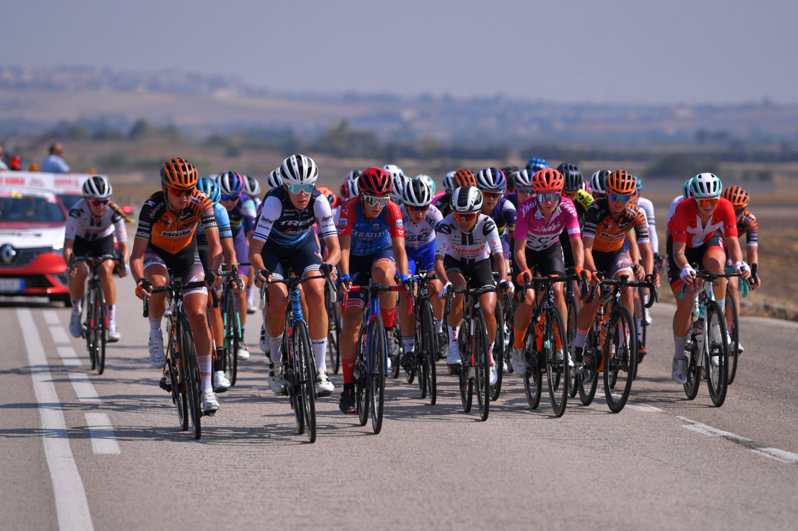In a nervous day filled with crosswinds and climbs, the Trek-Segafredo women showed their strength as a team, keeping Longo Borghini sheltered. When a breakaway finally formed midway through the 91-kilometer stage, US Champion Ruth Winder was part of the nine-woman group.