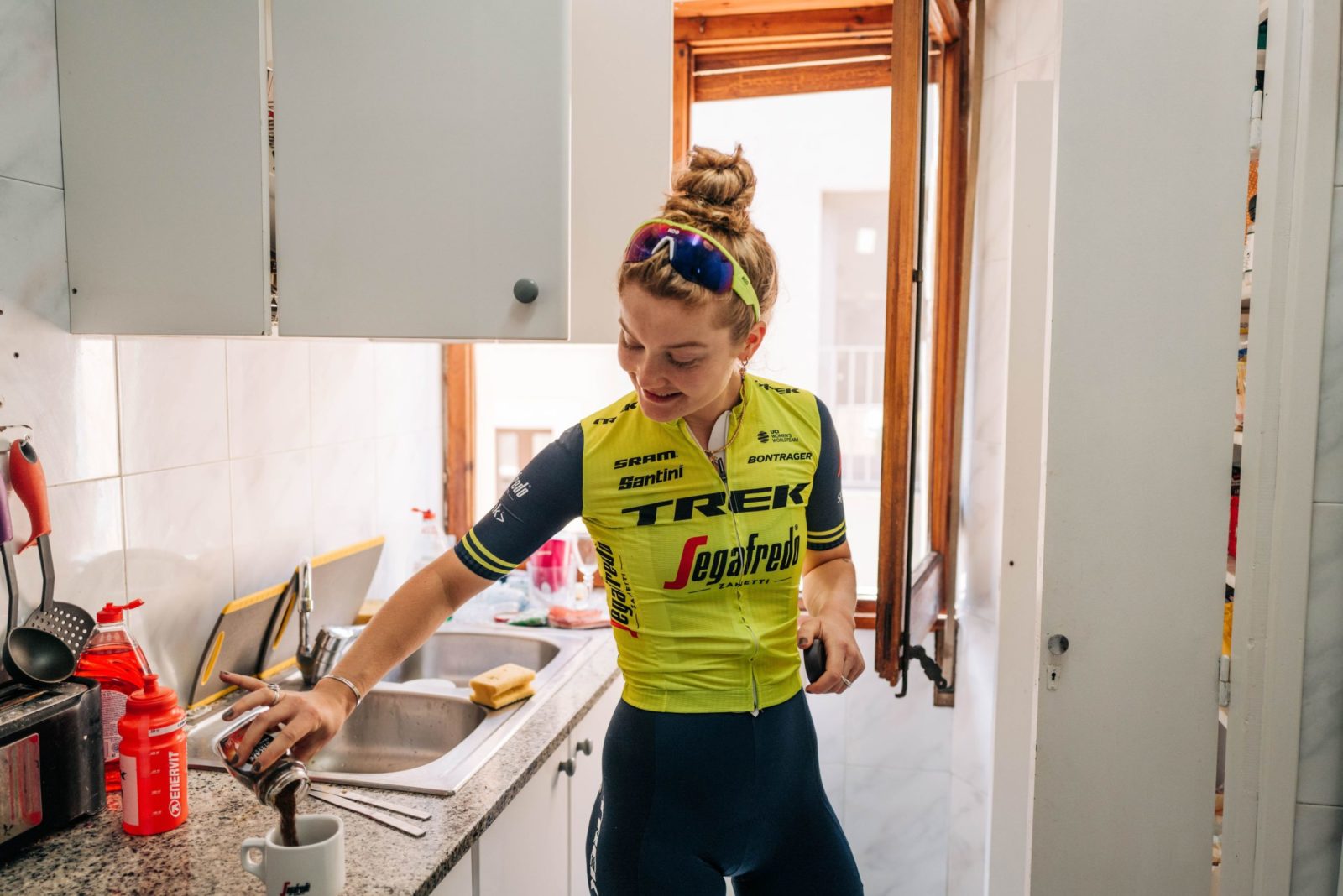 Jojo followed Toms Skujins, Abi Van Twisk, Ryan Mullen, and Will Clarke as they ventured out for their first road ride since mid-March. The joys of experiencing sunshine, fresh air, and hills were apparent as the Trek-Segafredo riders enjoyed their freedom from quarantine.