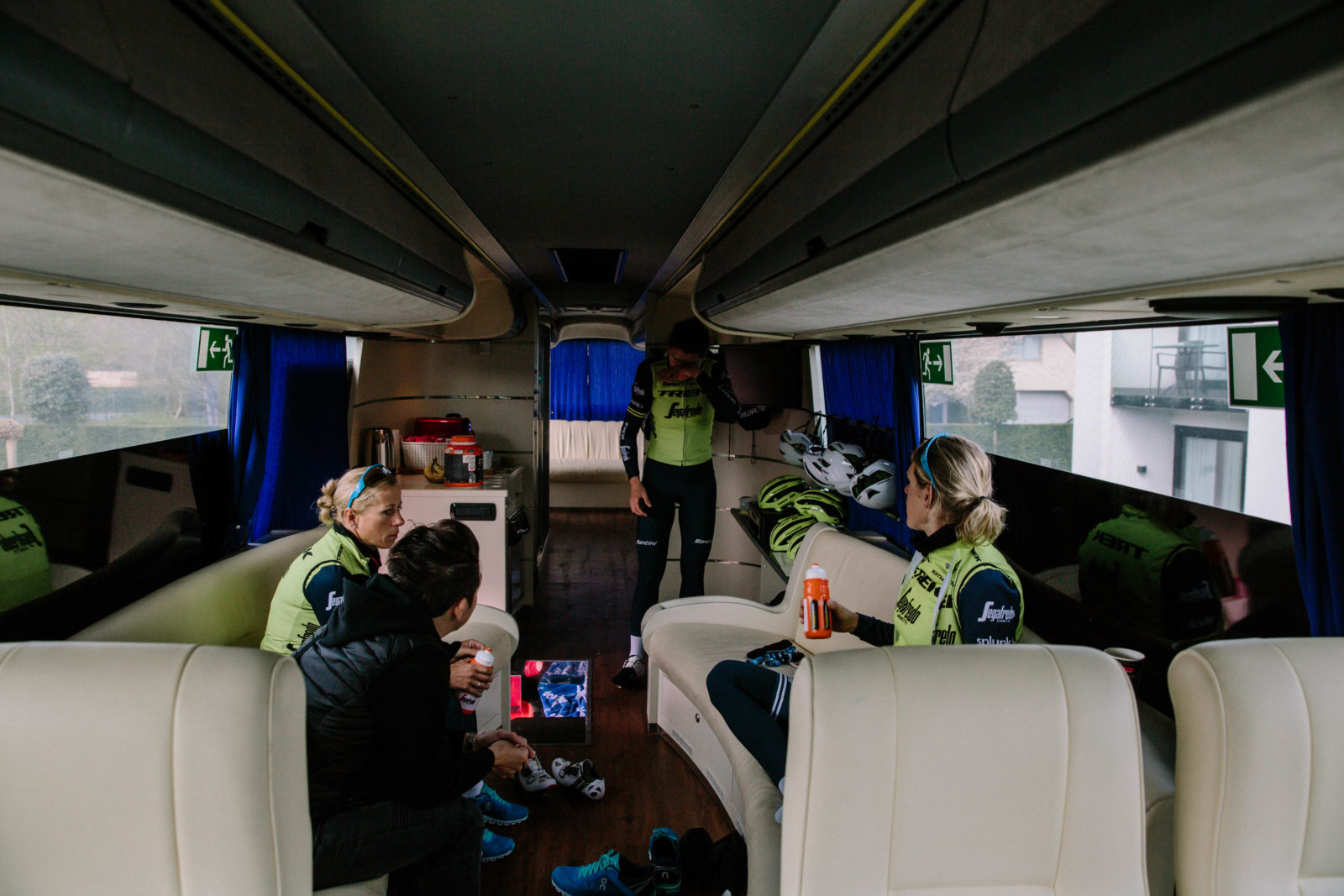 A behind the scenes look of the women's team in the days ahead of the Tour of Flanders.