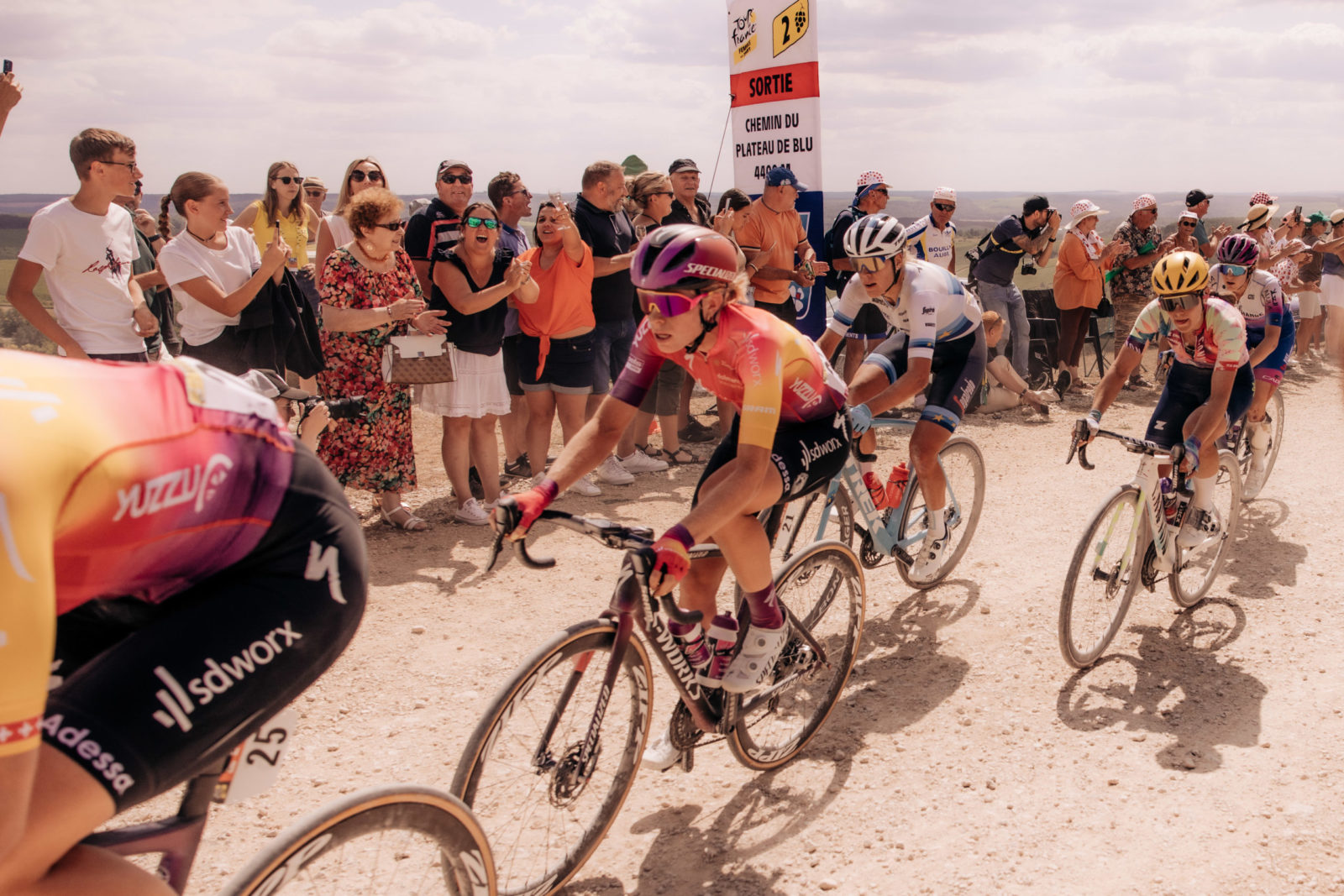 The Team's unsung heroes: Audrey pulled hard into the first gravel sector. 📷 A.S.O./Fabien Boukla