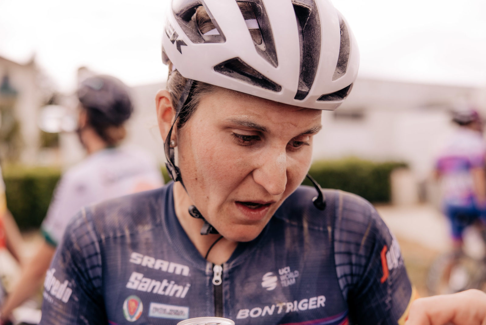 While the action was playing out differently for Trek-Segafredo, in the front of the race, Marlen Reusser increased her lead in a solo effort. Reusser held on to take the win while a three-rider chase group grabbed the minor places. The yellow jersey led home the peloton – 23 riders – all that remained after a day of gravel chaos.