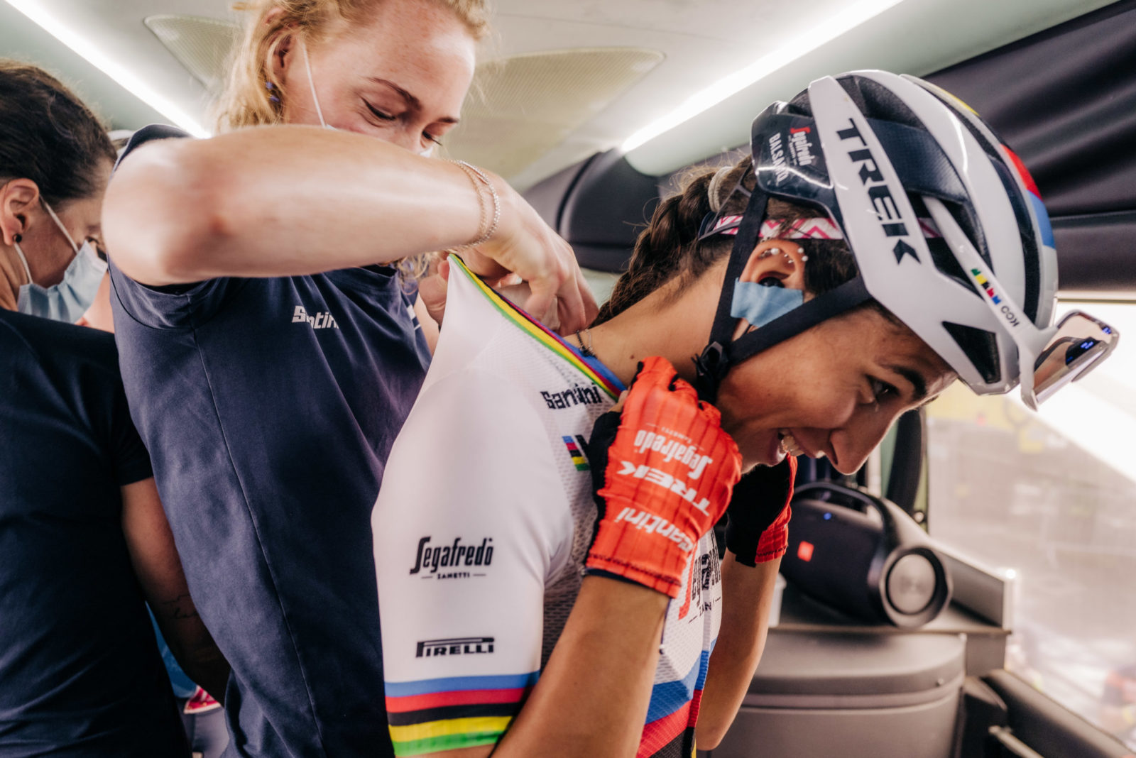 “The whole team did a great job: Audrey (Cordon-Ragot) was always keeping me in front, Leah (Thomas) was going back to the car to deliver me bottles. I am proud of them; I am proud of Trek-Segafredo,” said Longo Borghini, then added: