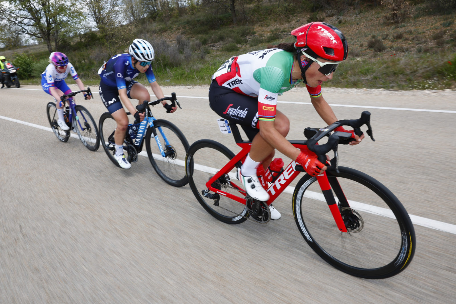 Trek-Segafredo made sure the pressure was on the shoulders of Team SD Worx approaching the bottom of the final climb up to Lagunas de Neila, racing aggressively and sending riders into breakaways, including Elisa Balsamo and Lucinda Brand, to force them to have to do the lion’s share of the chasing.