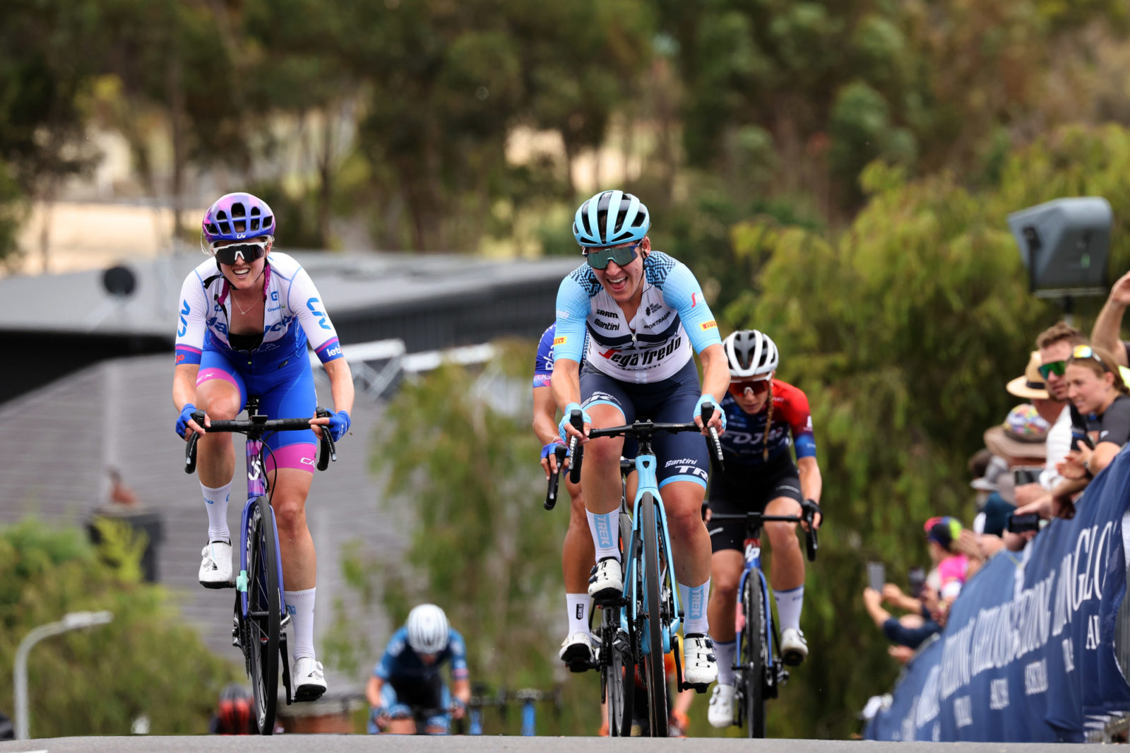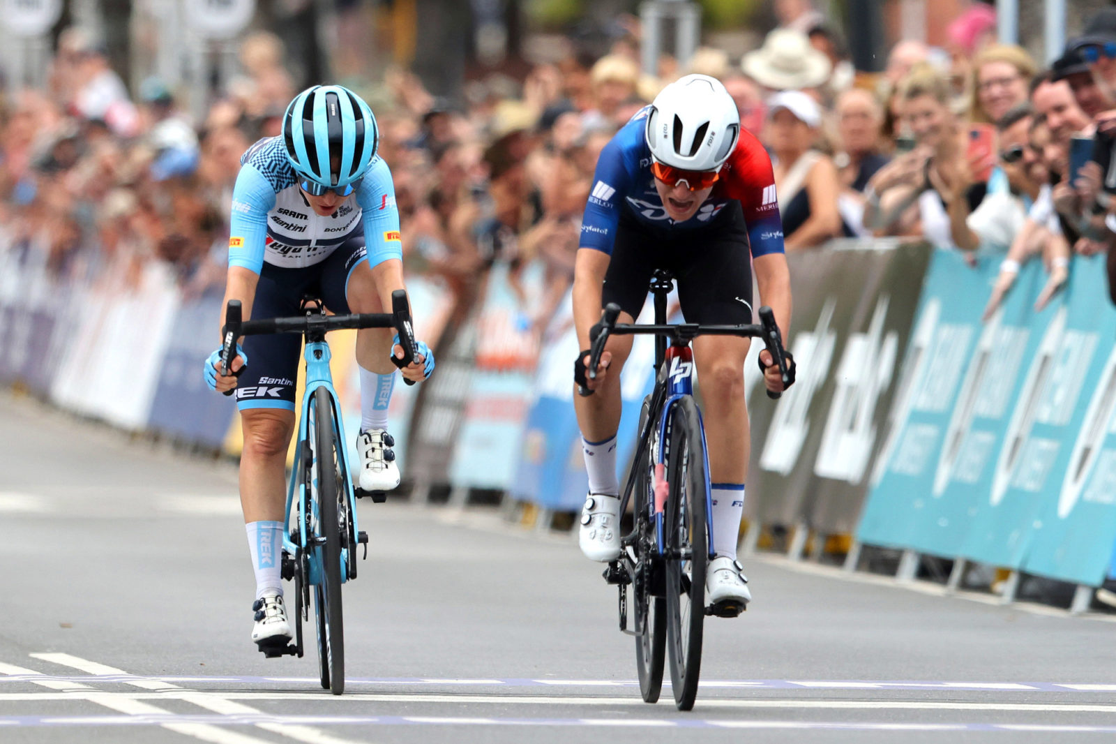 Although there was a somewhat cohesive chase behind the front duo, Spratt and Loes Adegeest (FDJ – Suez) found themselves battling for victory in a two-up drag race to the line.