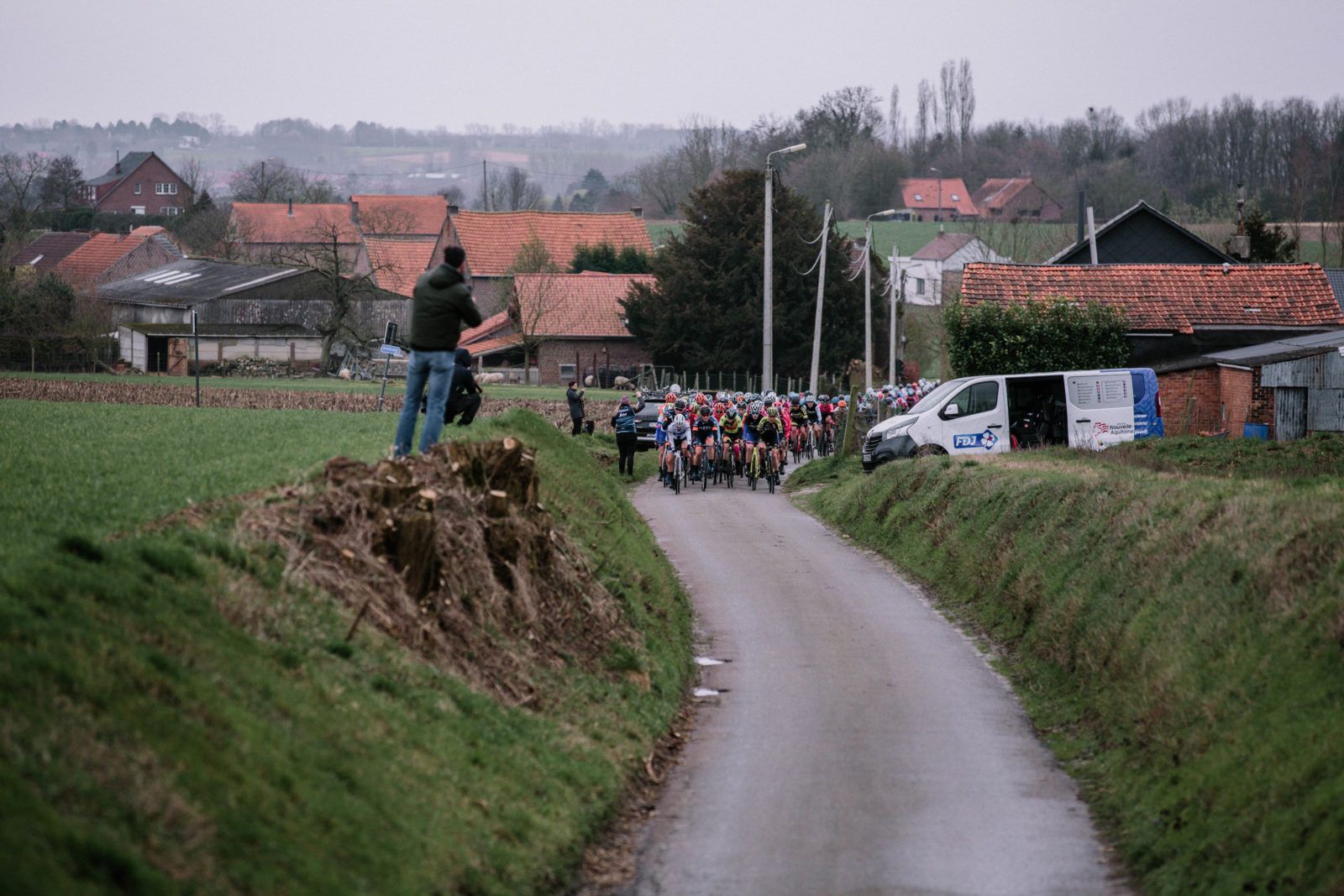 Behind-the-scenes images from Omloop het Nieuwsblad and Omloop van het Hageland by photographer Jojo Harper.