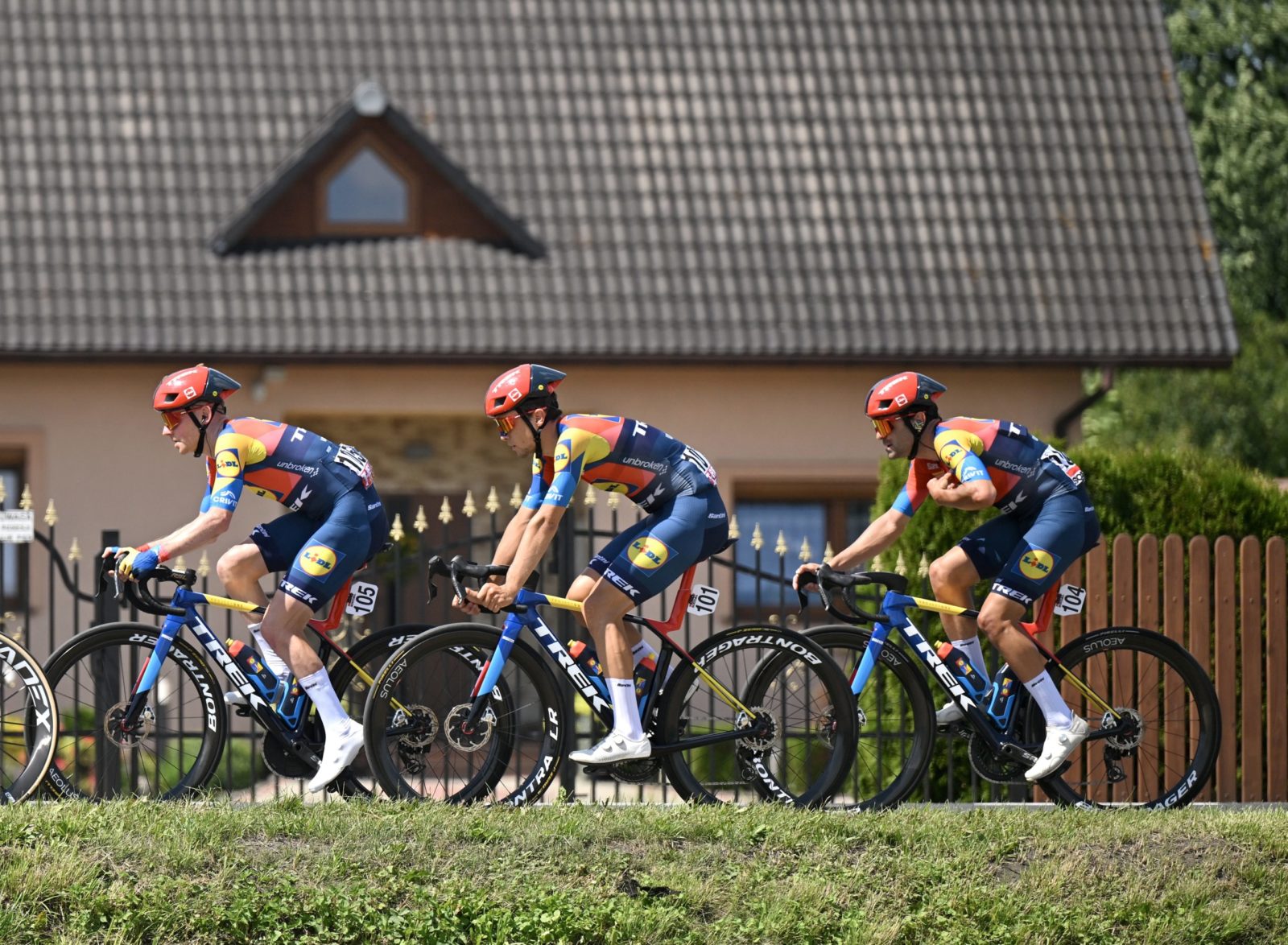 With a strong lead-out from Sam Oomen and Jacopo Mosca inside the final kilometre, it looked like Andrea could be set to take the top step on the podium but a very early sprint from stage winner Brennan of Visma Lease a Bike and runner up Ben Turner of Ineos Grenadiers meant our punchy Italian had to settle for third.