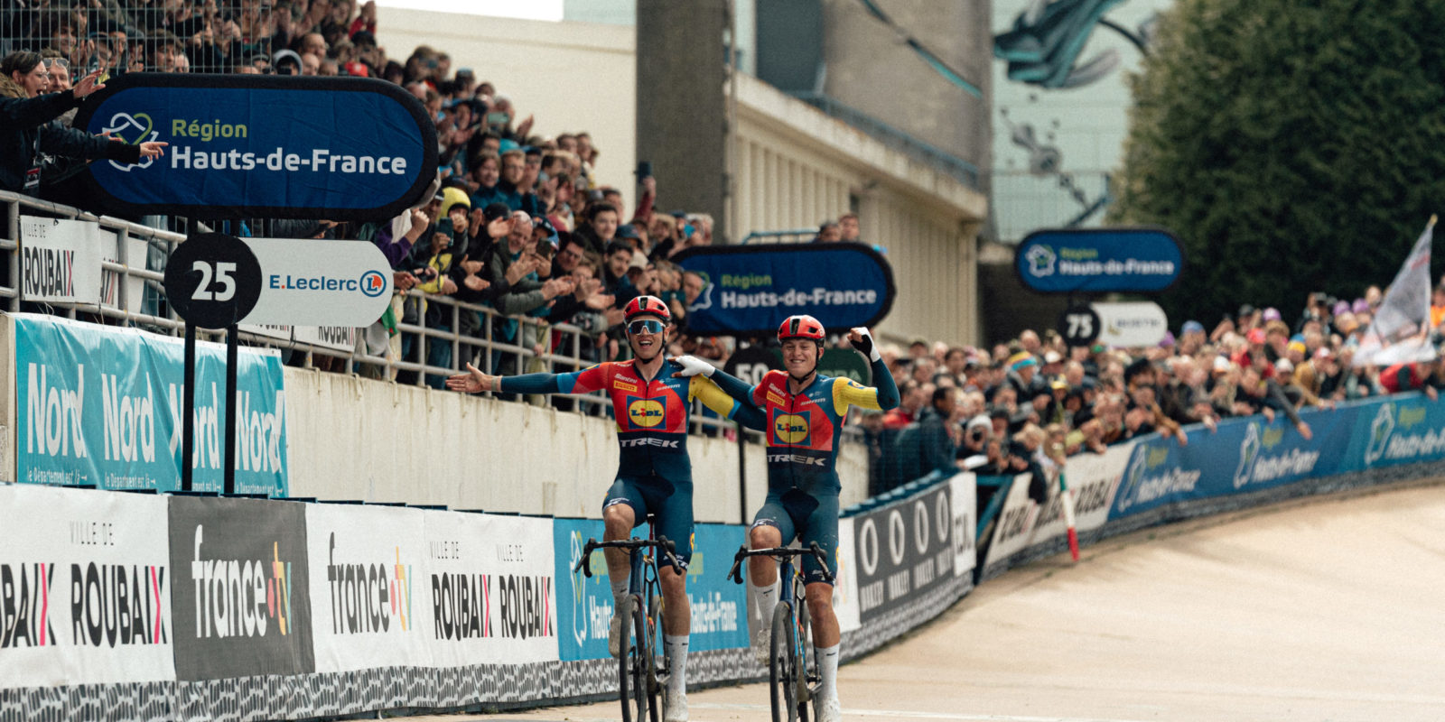 Together they powered through the final kilometers and entered the legendary Roubaix velodrome side by side. Philipsen was the first to cross the line, but the image of him and Söderqvist finishing arm in arm will stay with them and with us for a long time.