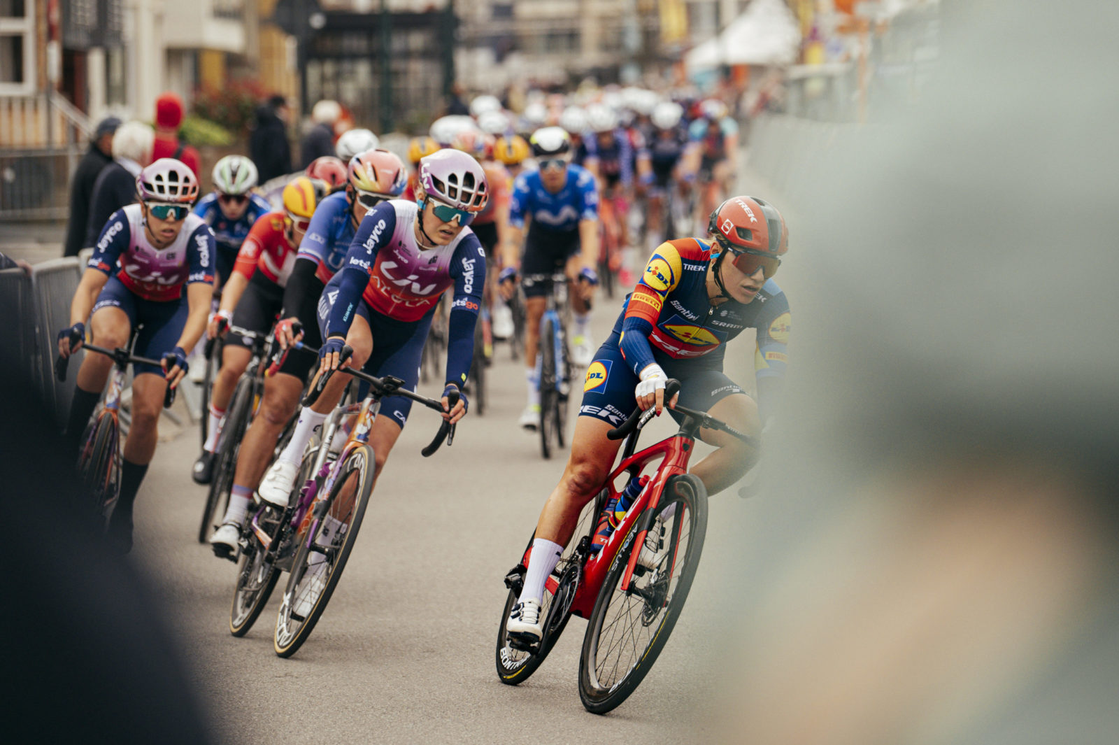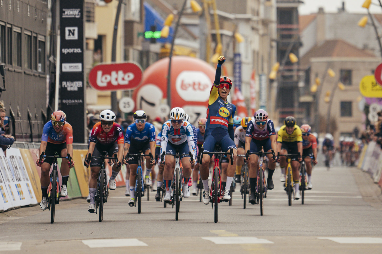 Lidl-Trek made full use of their five riders with first Elynor Backstedt riding hard at the head of the group to keep her teammates well-positioned and out of trouble. When she peeled off, Lucinda Brand took over with her diesel motor to pull back some late attacks. Finally, Lauretta Hanson lead the team into the final kilometer to deliver Clara Copponi and Elisa Balsamo safely through the final corner. Clara took over, doing the final bit of work to place Elisa on the back wheel of her strongest rival, Charlotte Kool (Team dsm-firmenich PostNL), from there, it was all down to the Italian who unleashed a furious sprint to win by several bike lengths, savoring the moment with her hands aloft.