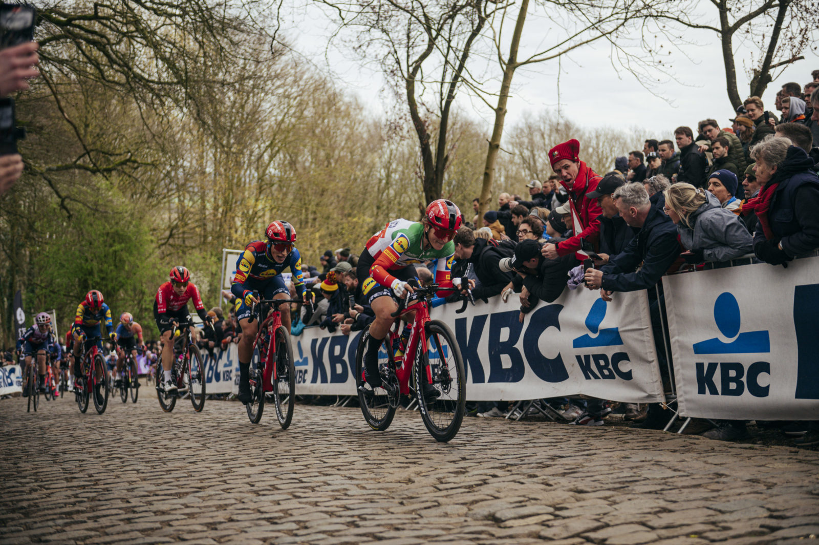 The first significant action came on De Moeren, when the crosswinds ripped the peloton apart, only for it to reform shortly afterwards. Things heated up again on the first ascent of the Kemmelberg when Kopecky launched an attack, which Elisa Longo Borghini and Elisa Balsamo were able to bridge across to after the descent. Each climb brought more attacks, but each time they were neutralized, especially through the work of Shirin van Anrooij and Ellen van Dijk, whose return to the Team was greatly appreciated.