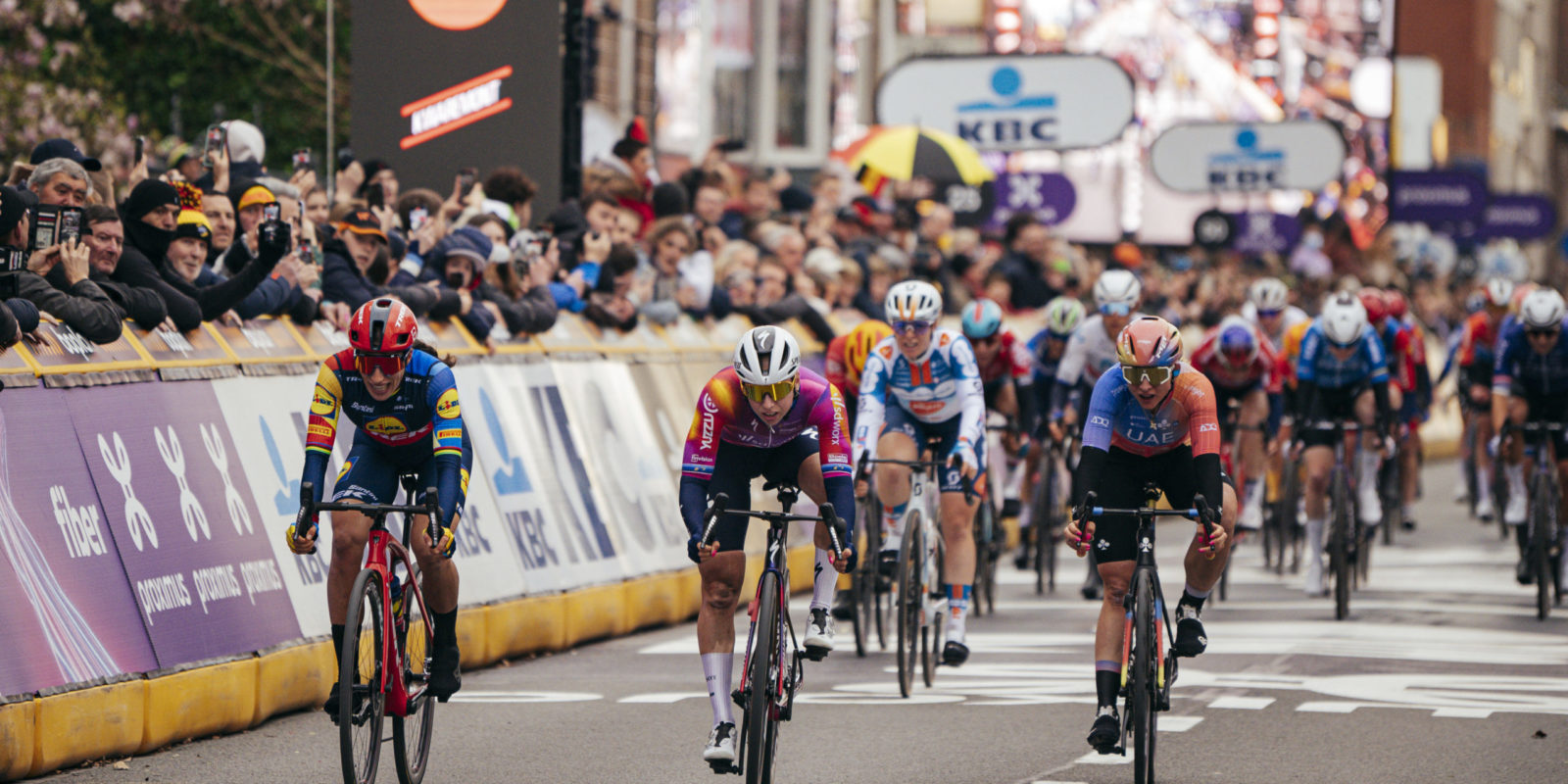 It came down to a sprint in Wevelgem. Elisa Balsamo launched her sprint from the slipstream of Wiebes, and for a split second edged ahead of her, however the Dutchwoman was able to return after a well-timed bike throw to clinch the top spot on the podium.