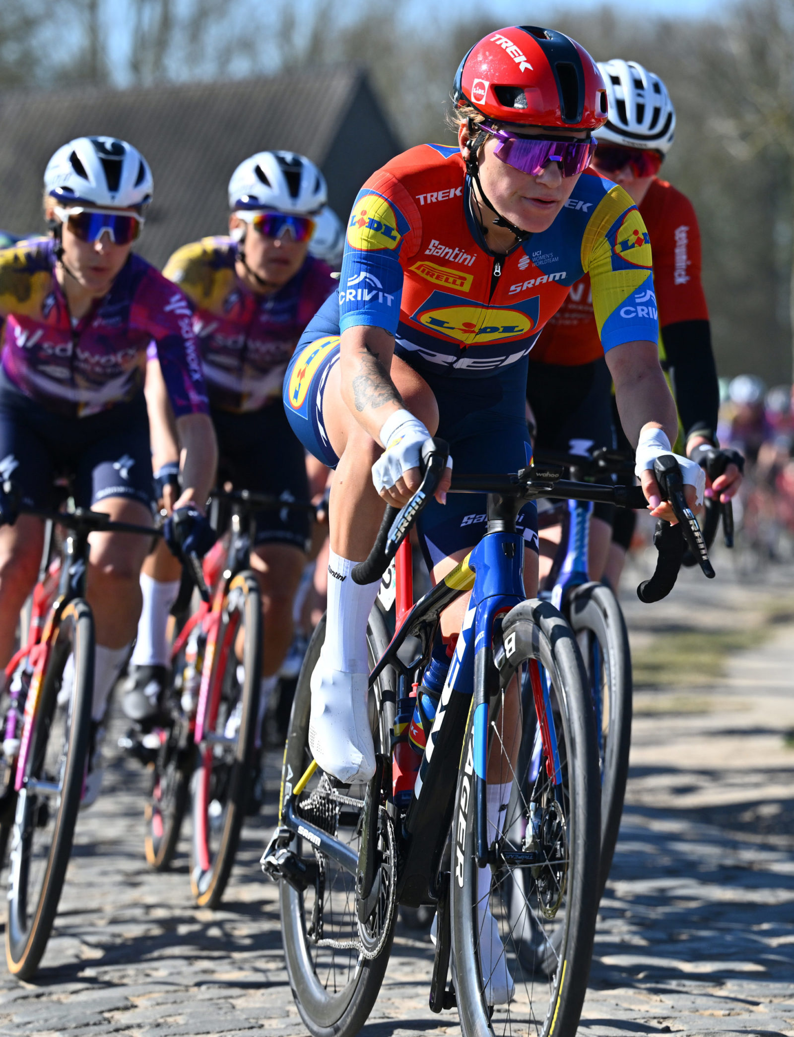 With 134km on the menu around the roads of Borsbeek, the Lidl-Trek women knew a bunch sprint was very possible and Clara had a real fighting chance. As expected on the rolling terrain, aggressive riders animated the race from the start. A handful of riders attempted to break away, but the Lidl-Trek squad maintained a disciplined tempo to keep things together for a sprint.