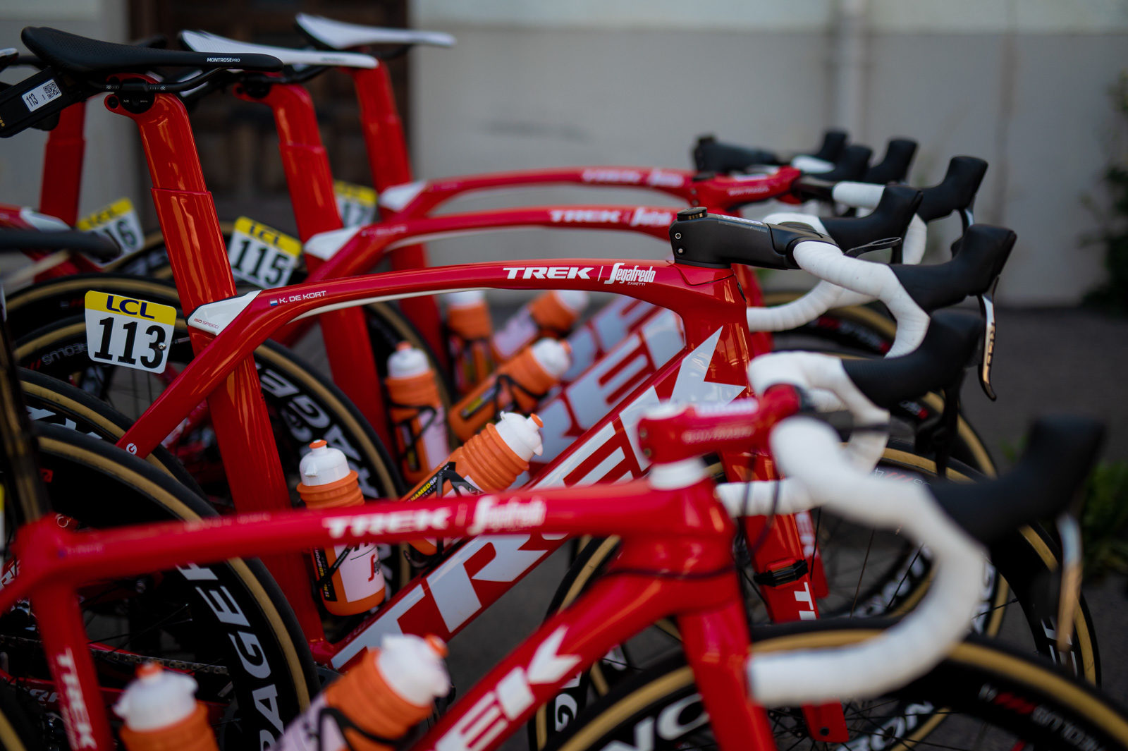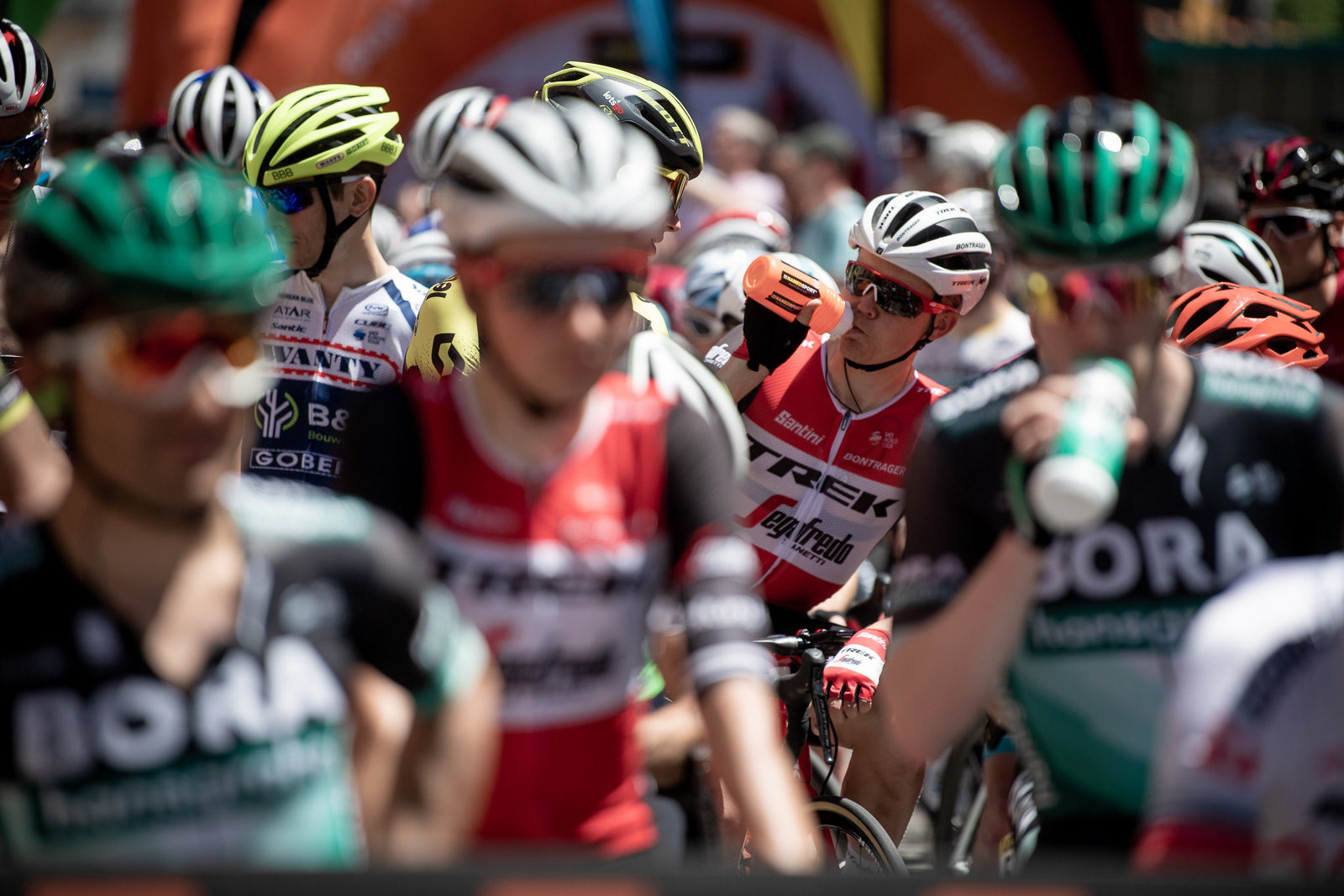 The sun was out for the final stage as Toms Skujins drinks ahead of the start.