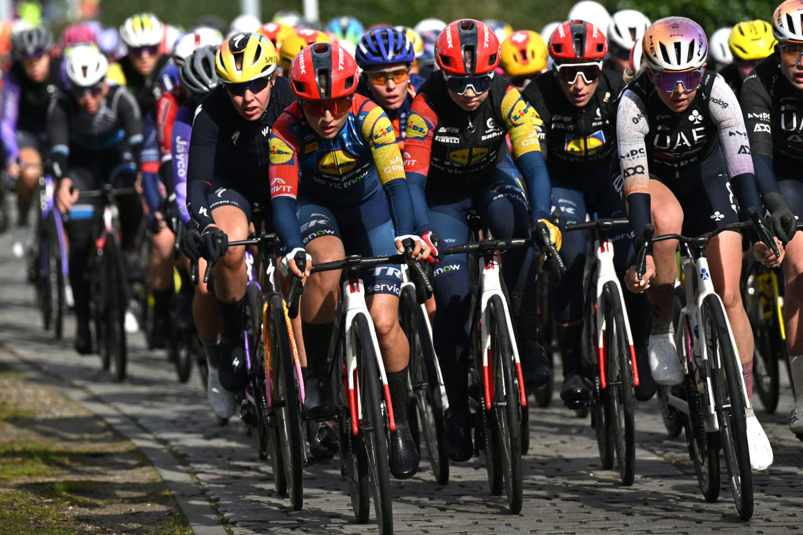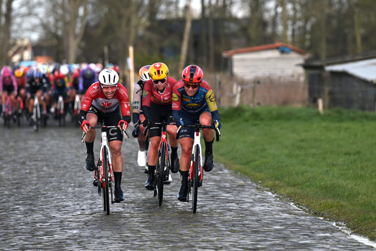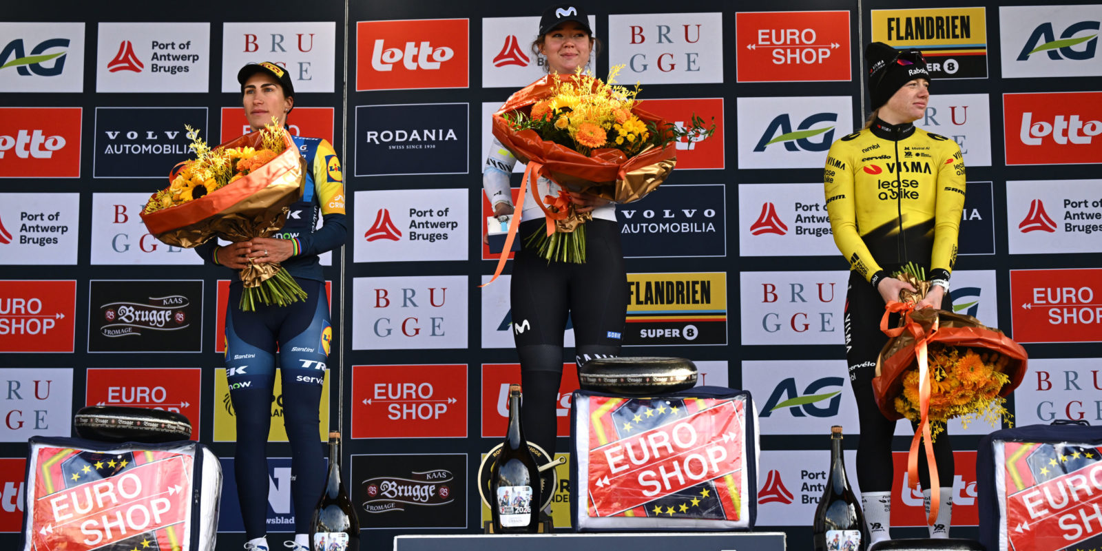 There is no more apt a welcome to the Belgian Classics season than rain, wind and cobblestones. The women’s edition of Ronde van Brugge on Thursday duly delivered with some of the toughest conditions seen so far this year: 143-kilometres of hectic racing through crosswinds and hailstones. Our women’s squad were well represented at the front of the peloton throughout the one-day race, protecting sprinter Elisa Balsamo as well as taking their chances when the moment was right. Lauretta Hanson made a promising, strong attack over the cobbles midway through the race, before the peloton regrouped ahead of the final sprint.