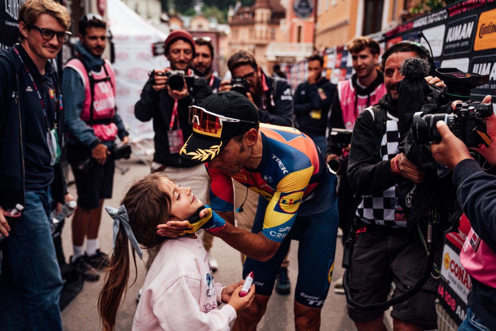 So what was an A-plus Giro was nearly an A-plus-plus, but adversity became an opportunity for Lidl-Trek to shine even more. Verona capitalized on Cicco’s absence and took a risk he might not have otherwise taken, going solo on the Stage 15 climb up Passo Dori with 44 kilometers remaining. He got to celebrate his win with his wife and children at the finish line. After the race, he explained how Ciccone helped motivate him to a career result.