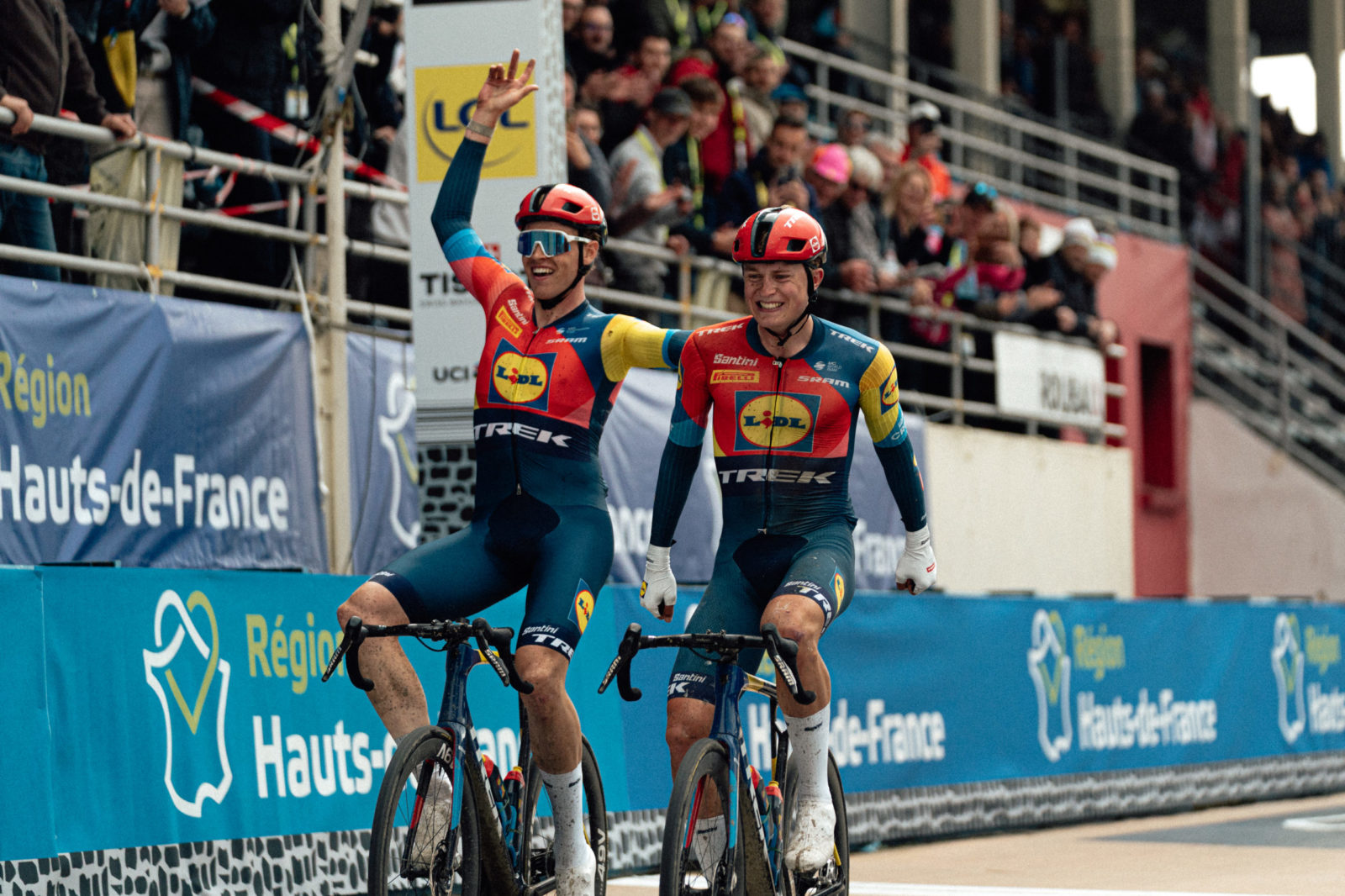 With 68 wins across menās, womenās, and development teams, Lidl-Trek celebrated a victory roughly: