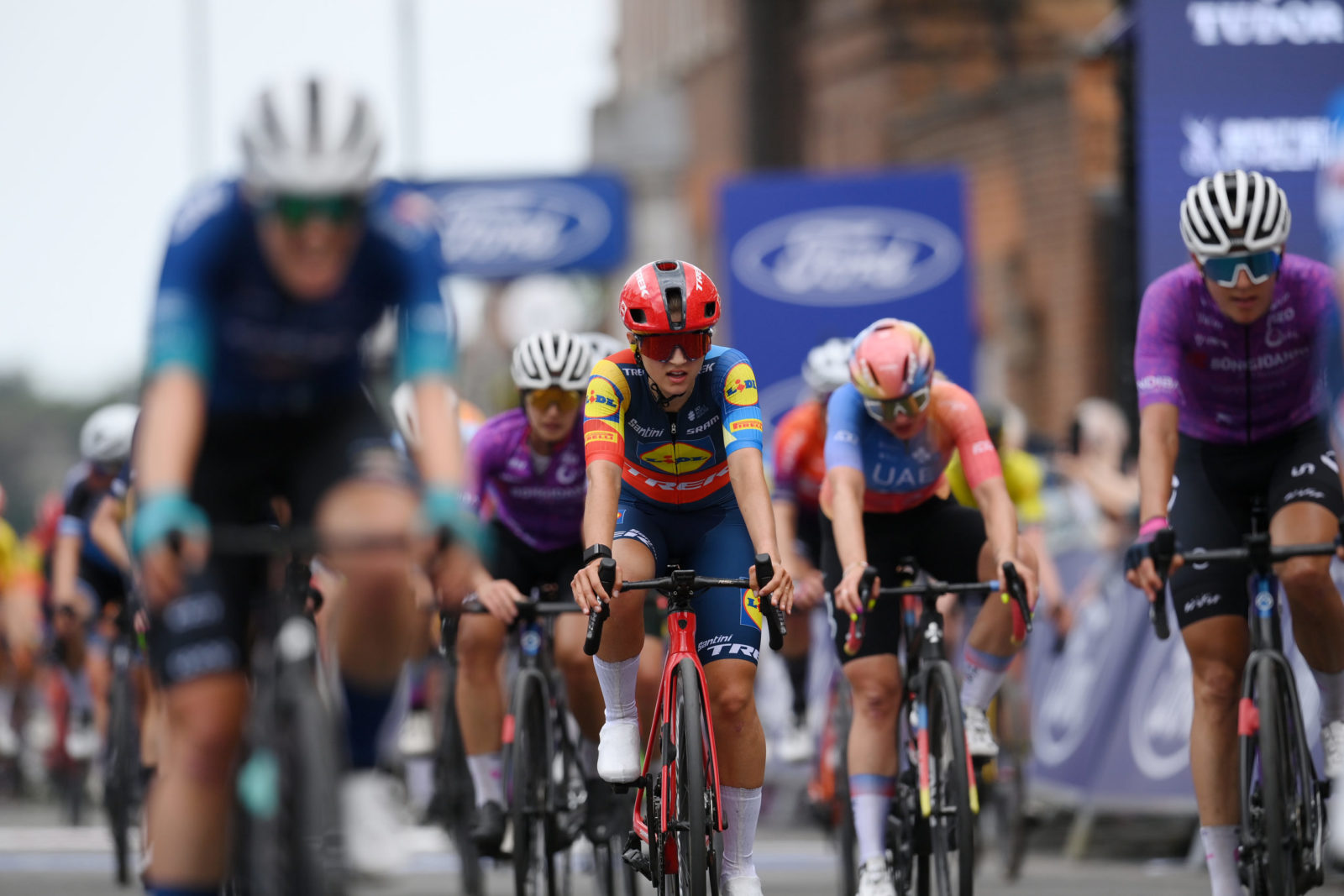 Coming into the finish in Colchester the stage was set for an uphill bunch sprint in the town center. Clara Copponi was positioned well by her teammates and unleashed a strong and long sprint on the ramp to the line. The Frenchwoman crossed the line having emptied the tank, but clearly pleased at the podium performance she had fought for.