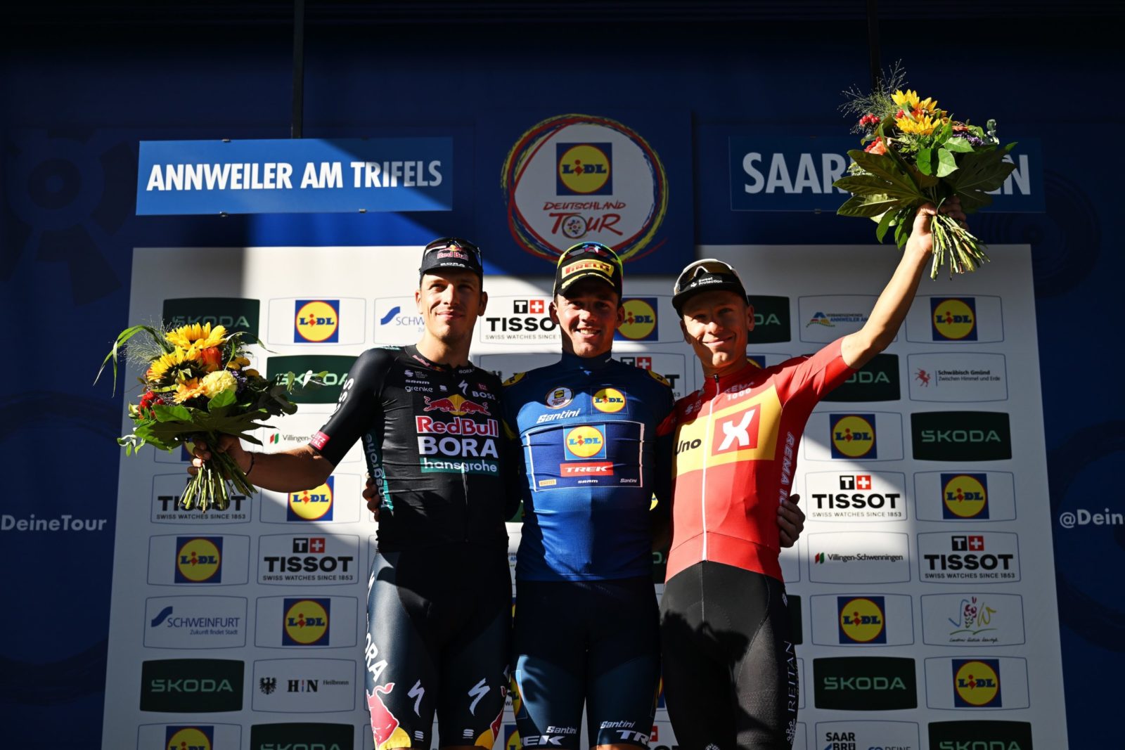It was a really tough race today. Yesterday was also a really hard race and I think a lot of guys, they got the bill today and again, it was proper racing in the last 50km so it, was definitely a really hard Lidl Deutschland Tour but we are just happy and proud that we could honor Lidl this much, winning every stage and the overall GC.