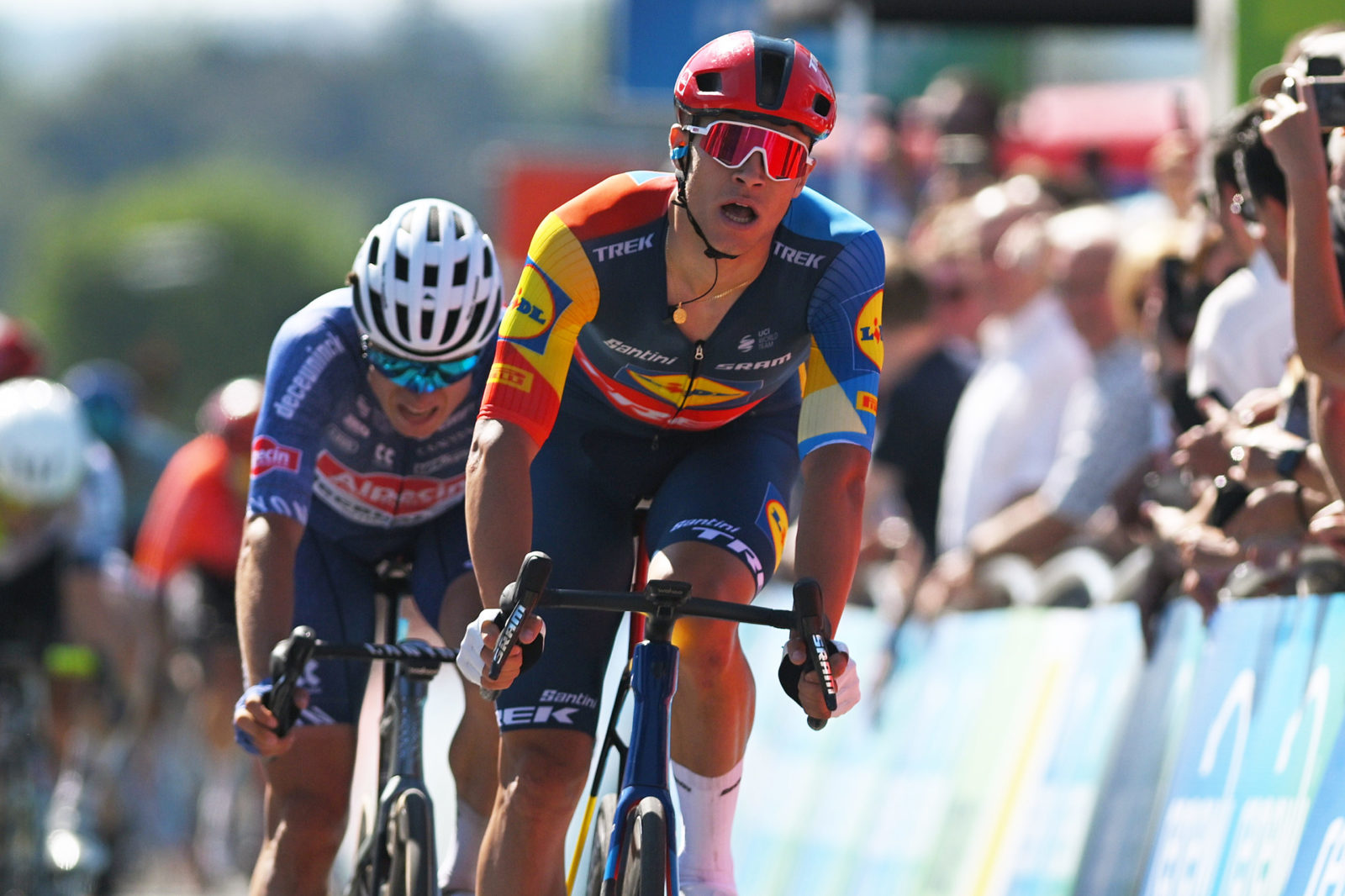 Jonny Milan’s golden moment continues to gleam after an impressive performance at the Lidl Deutschland Tour last week. In Belgium, the Lidl-Trek train continued full steam ahead to conquer the first stage of Renewi Tour (163km from Riemst to Bilzen).