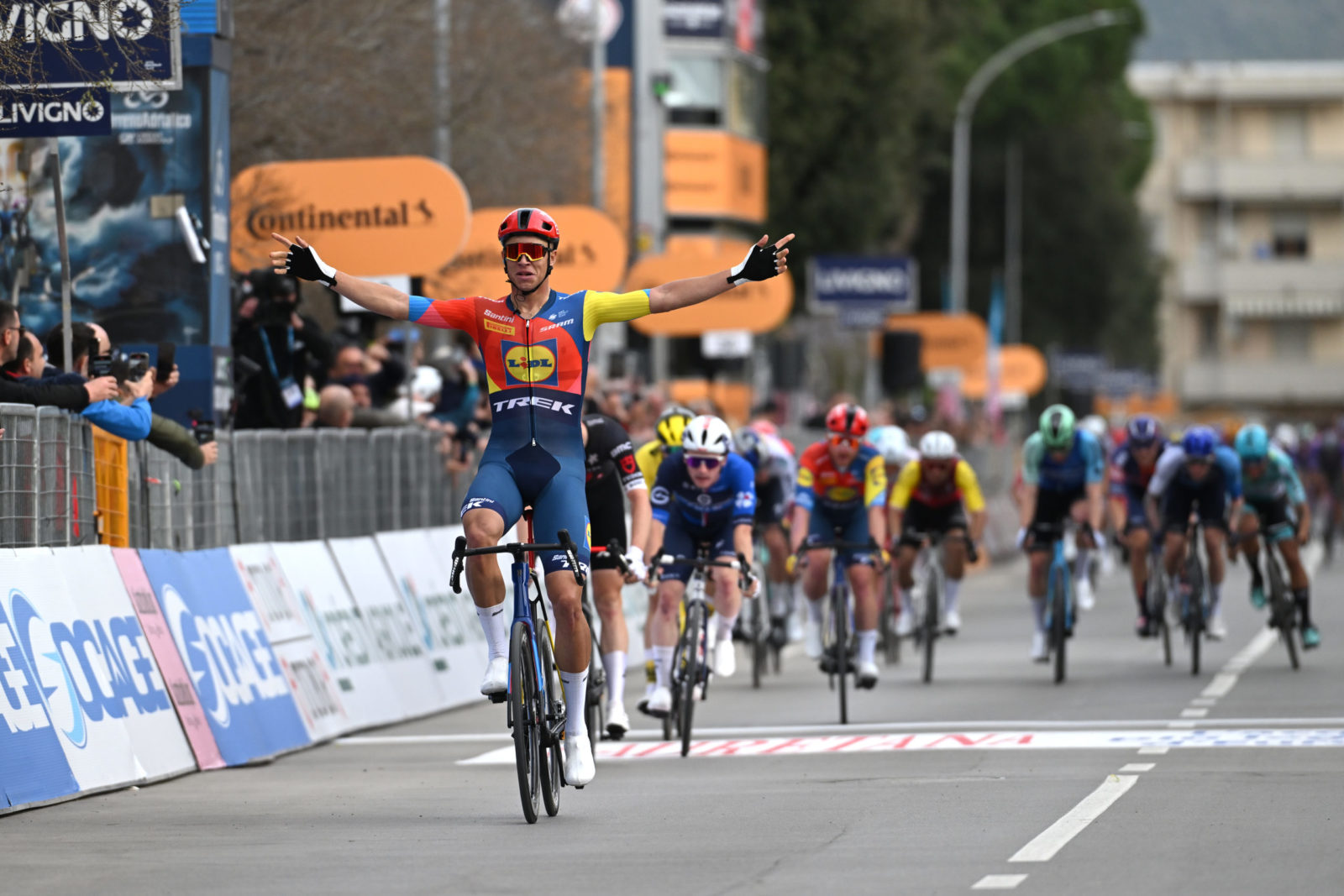 It was a tricky final lap around the finish town but Milan’s impressive sprint train, made up of Toms Skujins, Jasper Stuyven, Edward Theuns and Simone Consonni, managed their effort perfectly and reached every key milestone in the position they planned to at the morning meeting.