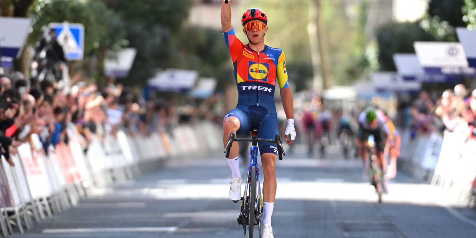 Thibau Nys clinched a remarkable victory on his first race back on the road at the Gran Premio Miguel Indurain in Estella, Spain. Andrea Bagioli backed it up with a very impressive 3rd place.