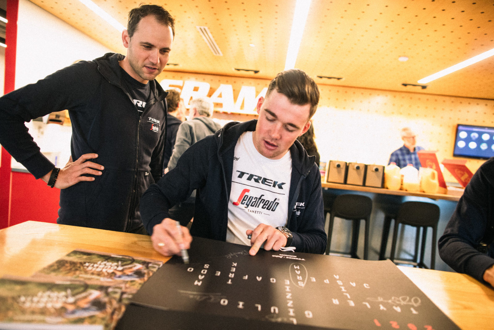 Next on the agenda was a visit to the SRAM HQ, where equipment used across the gamut of cycling disciplines are developed and tested. Our riders worked with SRAM engineers on product development, as well as meeting the hardworking staff that keep our gears switching. Plus, there were donuts and strong Segafredo coffee to help with the jetlag which had started to kick in.