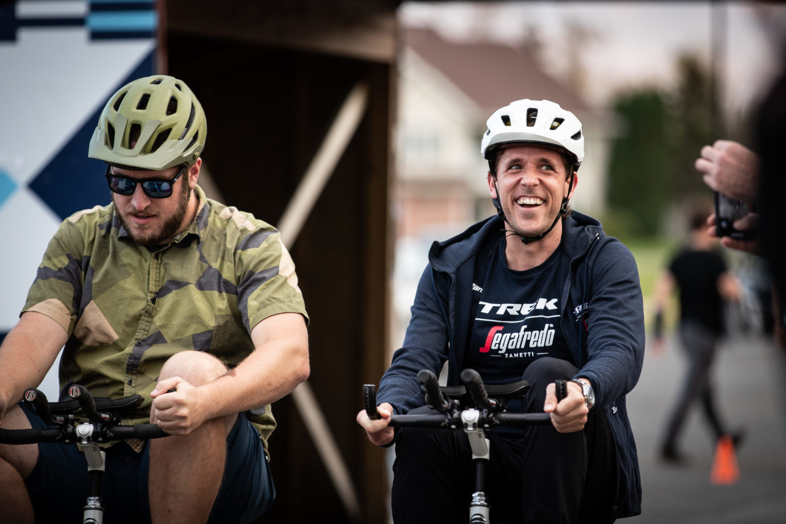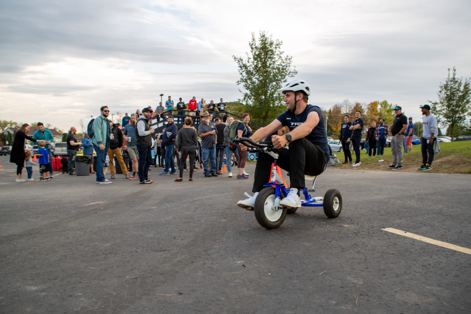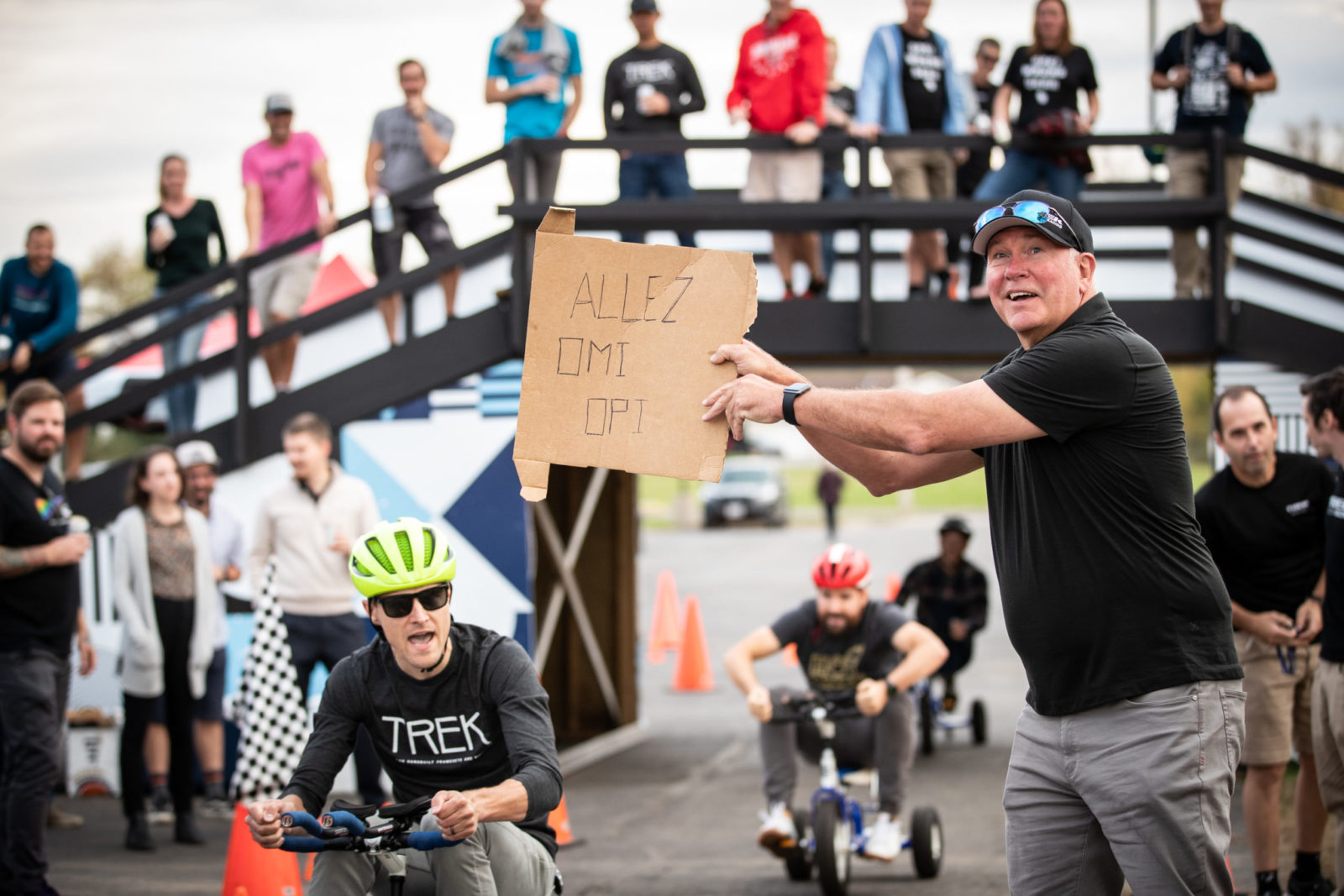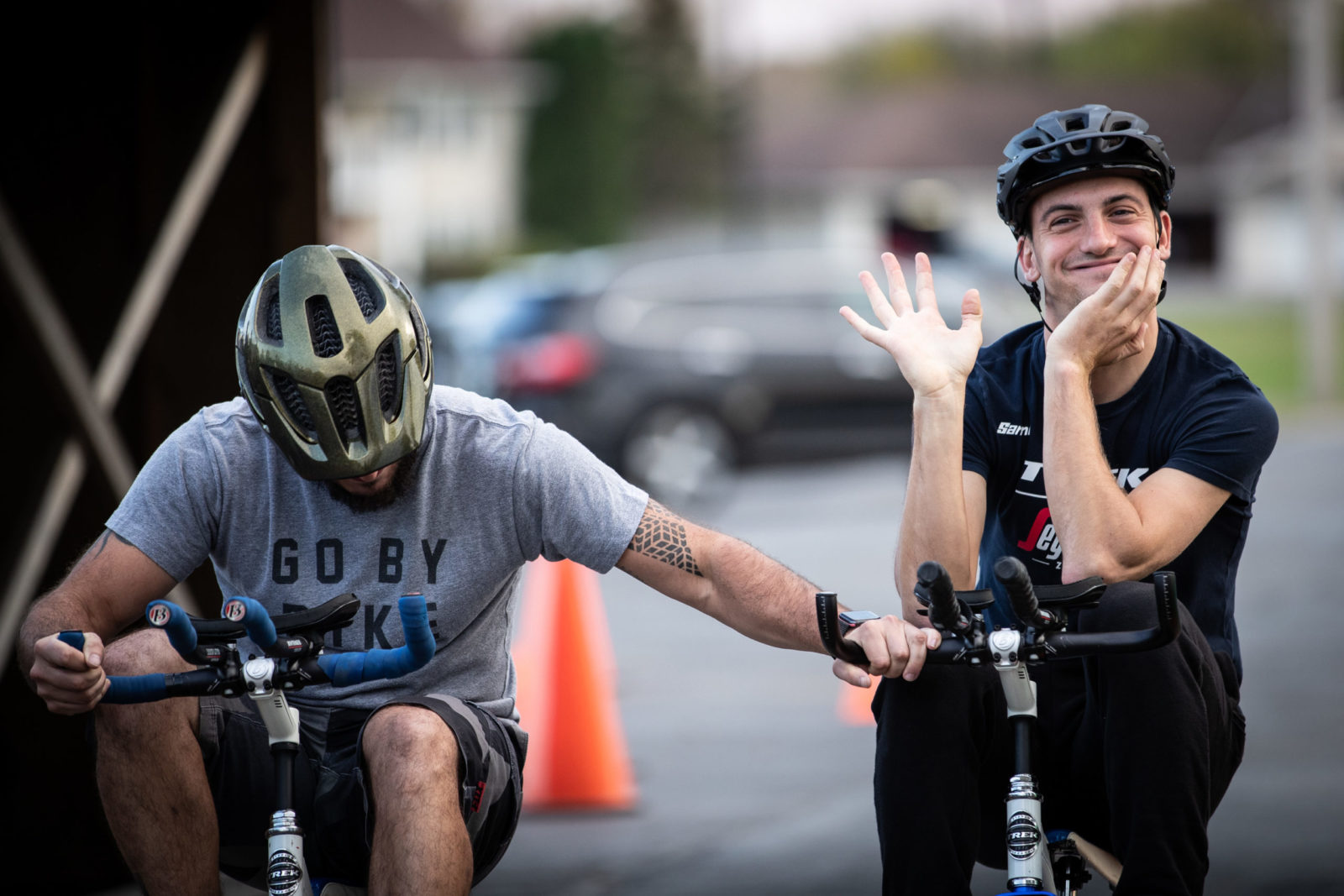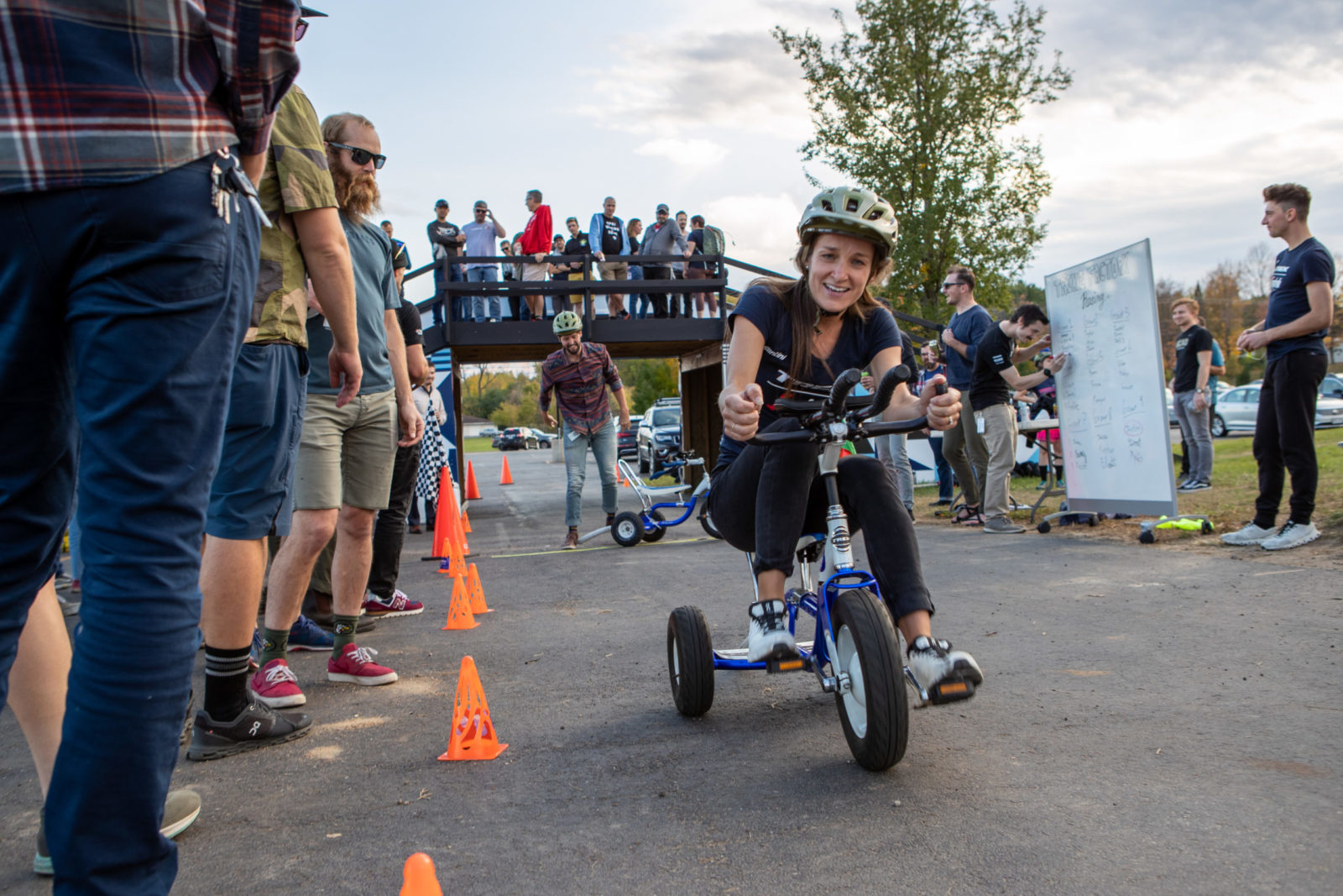 Our whistle-stop tour continued with a trip to Trek HQ in Waterloo, Wisc. where we had a full schedule. Jasper, Lizzie and co. had an early wake up to play some ice hockey session at the local Wisconsin Hockey Club before plenty of photoshoots for our new 2022 riding kits. The radioactive coral kit is our hi-vis outfit for training at home, and you’ll have to patiently wait to see what the designers at Trek concocted and our partner Santini brought to life. Next, there was more product feedback with the Trek engineers to help make our fast bikes even faster. The finale of our Trek visit was an all-in trike racing tournament, Trike Factory Racing.