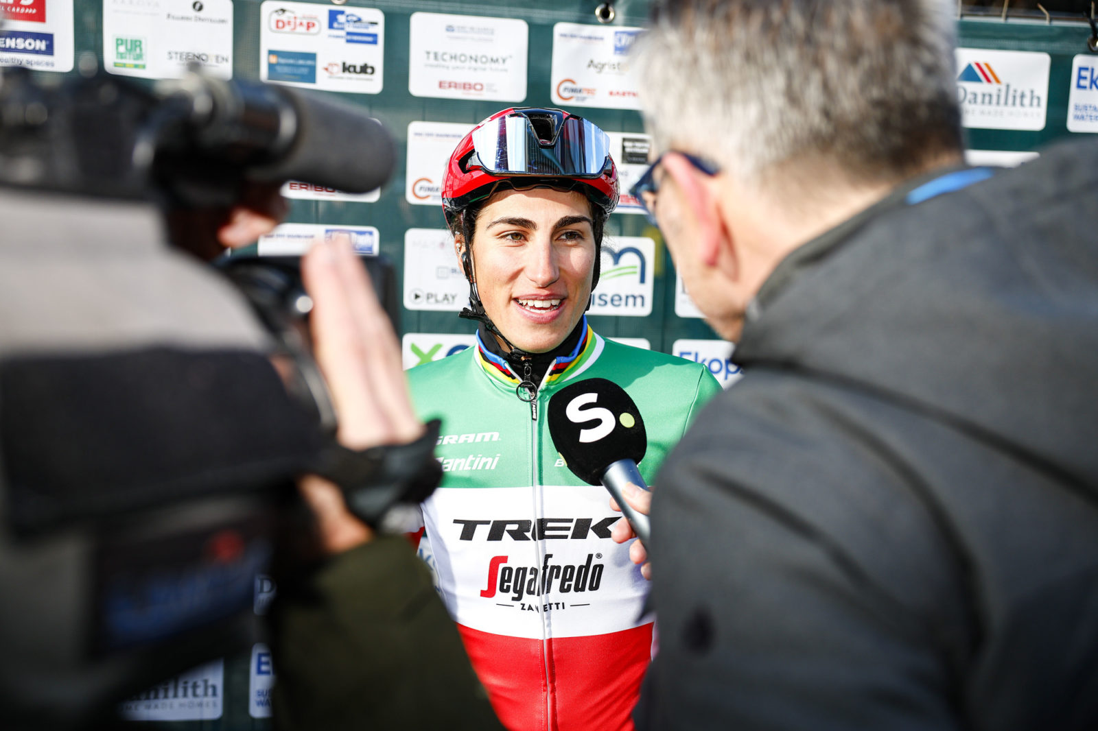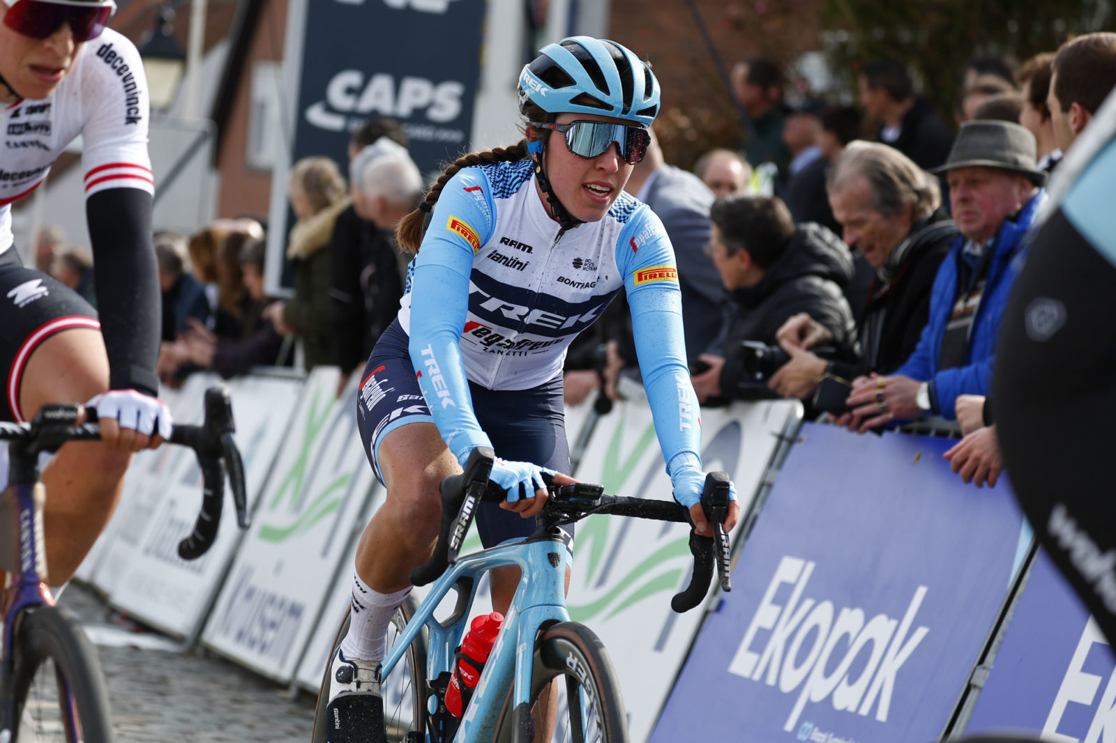Elisa Balsamo took fourth place in the women’s race behind Lotte Kopecky, who attacked on the final lap to take a solo victory in Nokere.