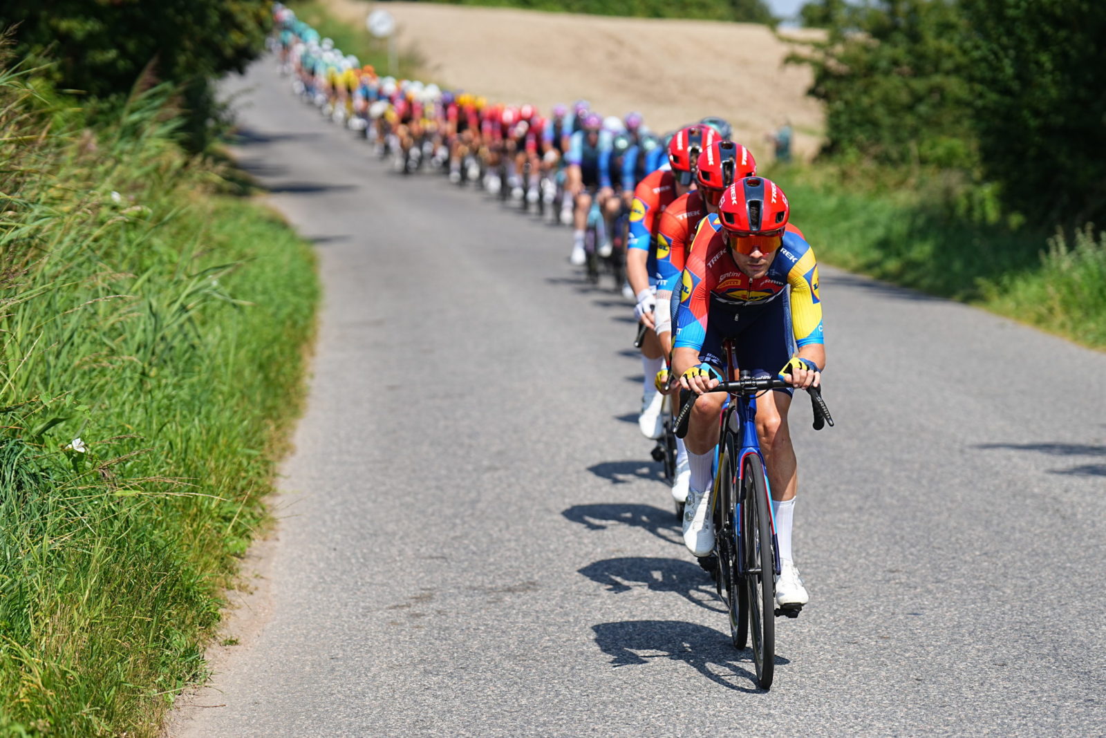 With two stage wins already achieved and the leaders jersey on the back of Mads Pedersen, all eyes were on Lidl-Trek to control the 227km Queen Stage of the Tour of Denmark. After the early break was established, so began a long day for Martin Pedersen and Ryan Gibbons, who between them rode on the front of the peloton for over 100km.