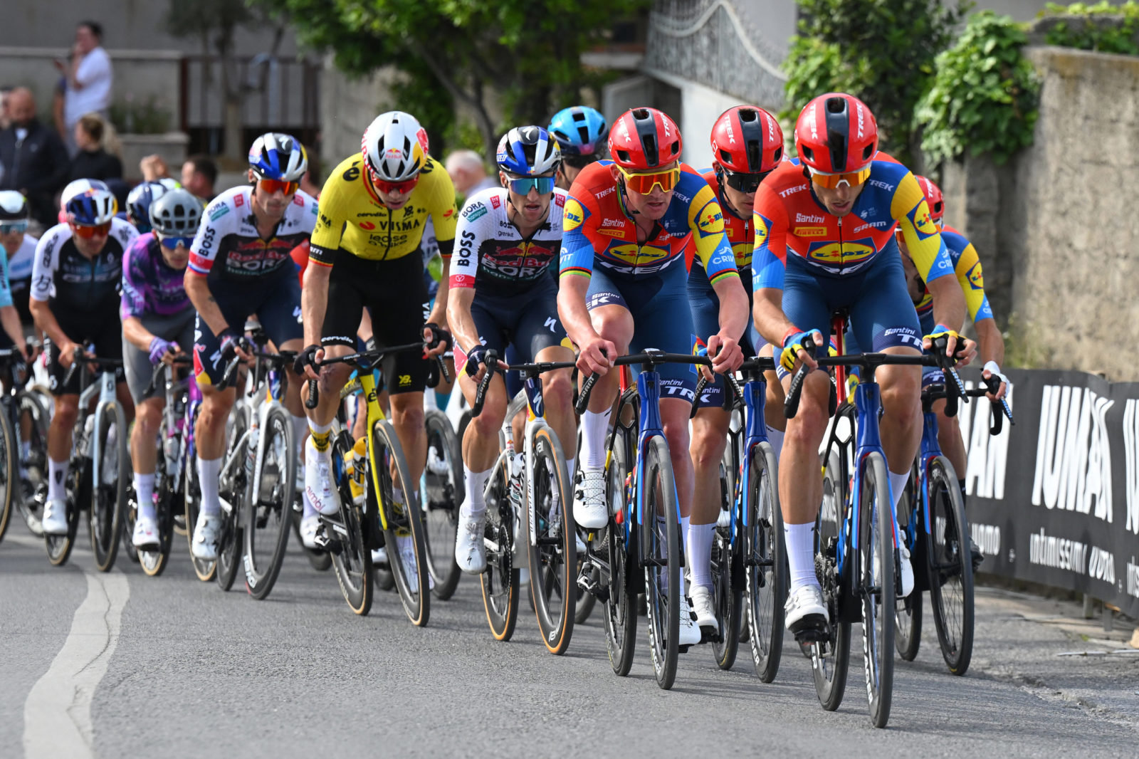The Team remained calm and in control as they led peloton on the second time up the Surrel climb, but unlike the first ascent where they kept a steady pace, Lidl-Trek took the tempo up a notch and, as a result, riders were being dropped of the back of bunch.