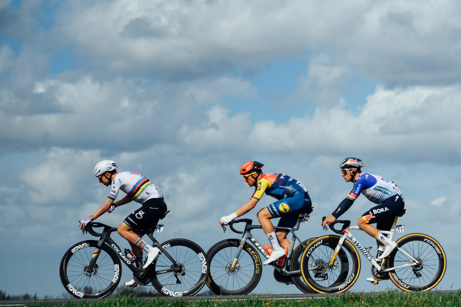 The men’s race began proceedings on sacred Sunday. Antwerp’s Grote Markt was bursting with thick crowds of people waving off a superstar line-up as they headed for 260-kilometres of Flandrian hills. Lidl-Trek’s main goal of the day was to protect team leader Mads Pedersen and position the Dane well so he was ready when the favourites took to the front. It was a job executed perfectly by the likes of Eddie Theuns and Mathias Vacek, with Pedersen making the elite selection of riders who broke away with just over 100-kilometres remaining.