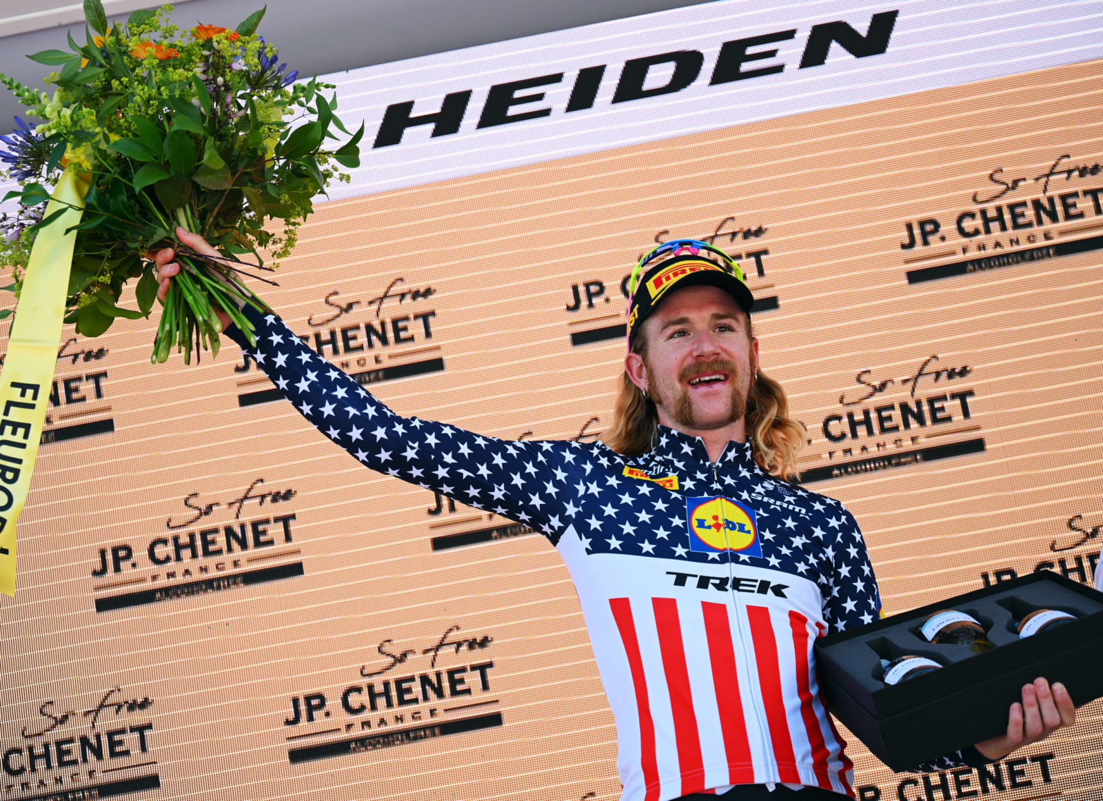 The first part of the celebration was for me - the eagle - in my new US national champion jersey. The last time I was in this jersey I didn't win a race and I had a terrible season. It was a huge motivation to win in the American champion jersey. The final celebration was to say that I dedicate this to Gino. To win a WorldTour race in this US champion jersey is for sure up there (amongst top wins)