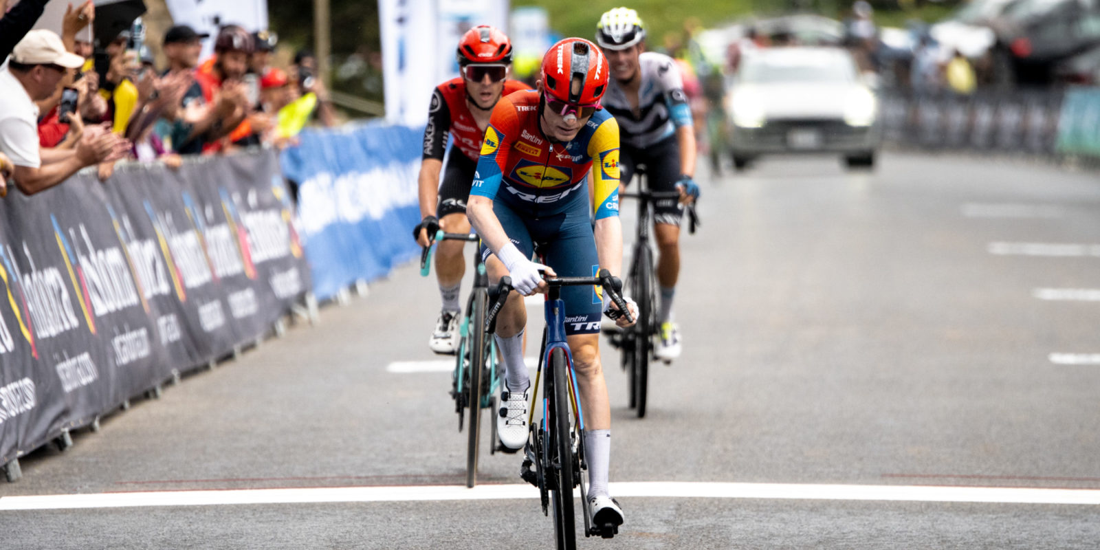 The Lidl-Trek squad featured several riders racing on their adopted home turf, including Skjelmose. The Dane was kept out of trouble all day by his teammates, knowing that the final ascent of Coll de la Botella would be the decisive section. Skjelmose approached the summit as part of a group of five climbers vying for the victory. With 200 meters to the line, Skjelmose made a savvy acceleration to take the inside line, and continued to power his way to the finish, taking the win by two bike lengths over his rivals.