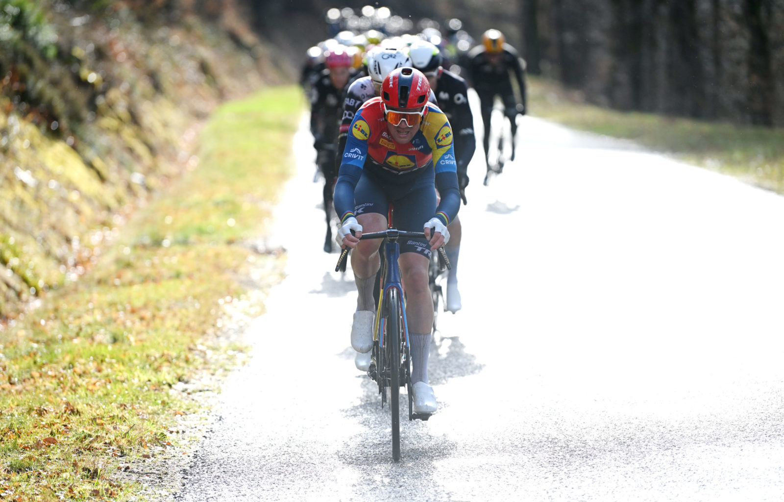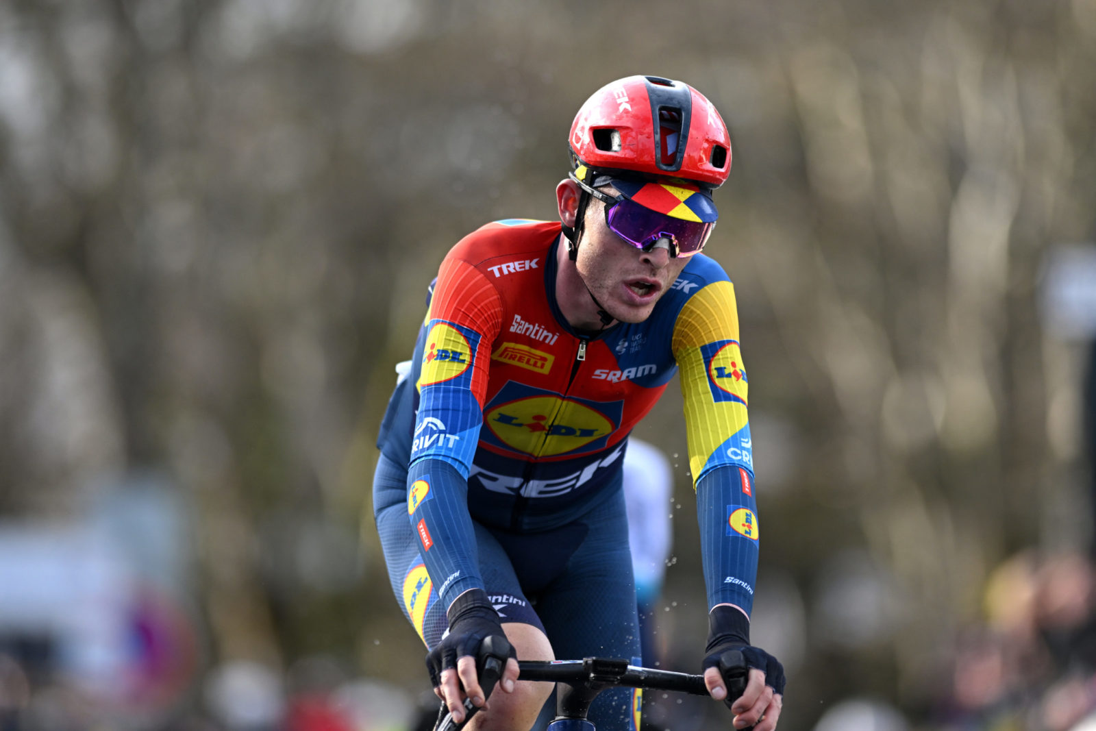 With 46km to go, the weather conditions worsened and the call was made to halt the race. This gave a chance for our guys to change clothes, layer up and take on some hot drinks in the freezing conditions. After a small neutralised section, racing got underway and Mads Pedersen wasted no time in setting a fierce pace on the front of the peloton.