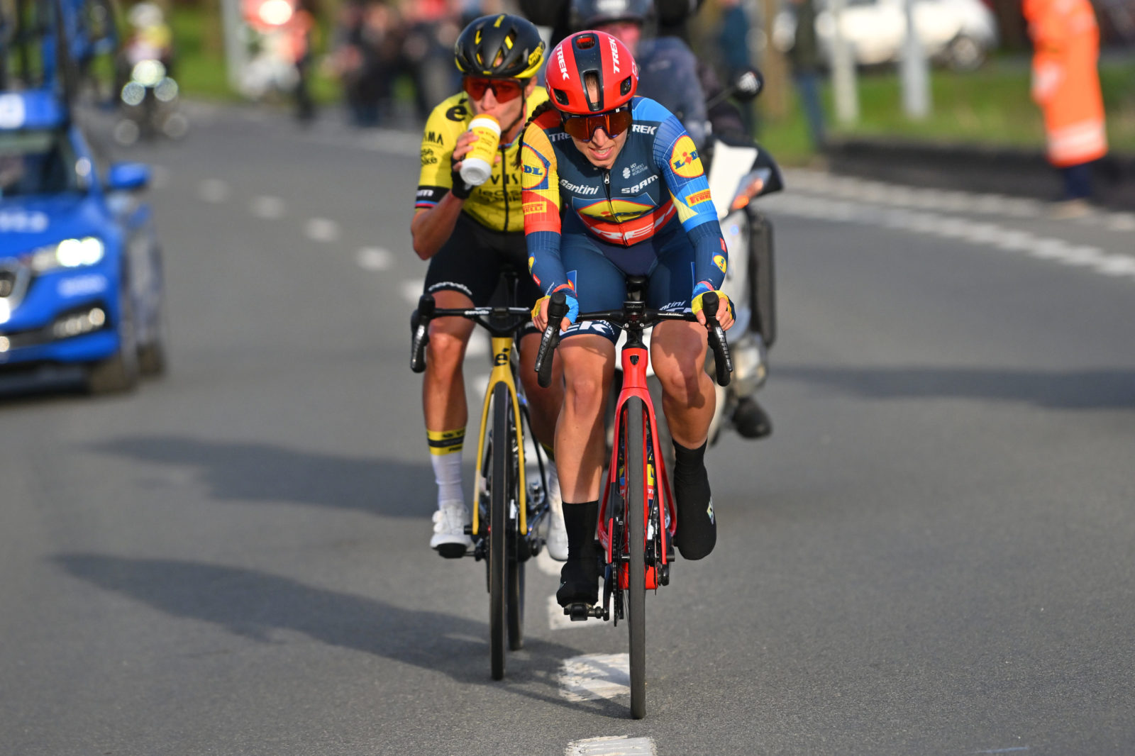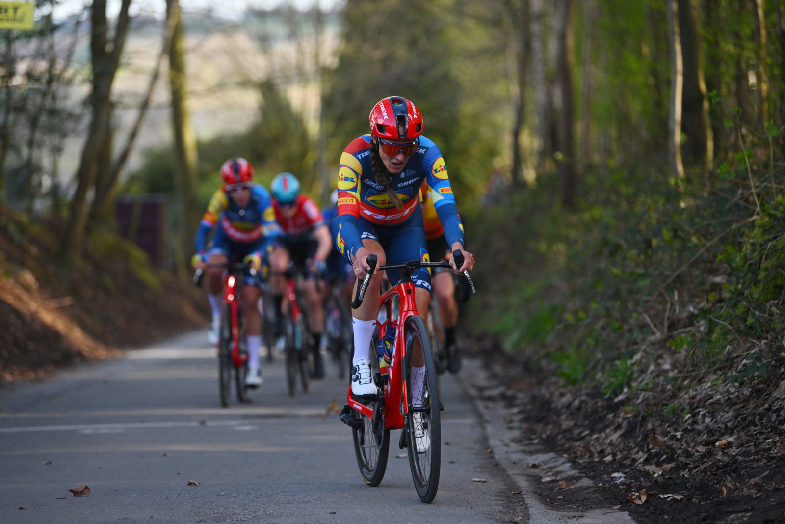 WAREGEM, BELGIUM - MARCH 27: Lucinda Brand of The Netherlands and Team Lidl - Trek competes during the 12nd Dwars door Vlaanderen 2024, Women's Elite a 129.9km one day race from Waregem to Waregem on March 27, 2024 in Waregem, Belgium. (Photo by Luc Claessen/Getty Images)