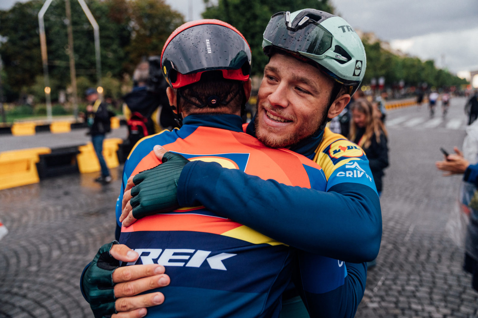 More hugs on the Champs-Élysées. | Photo: Zac Williams