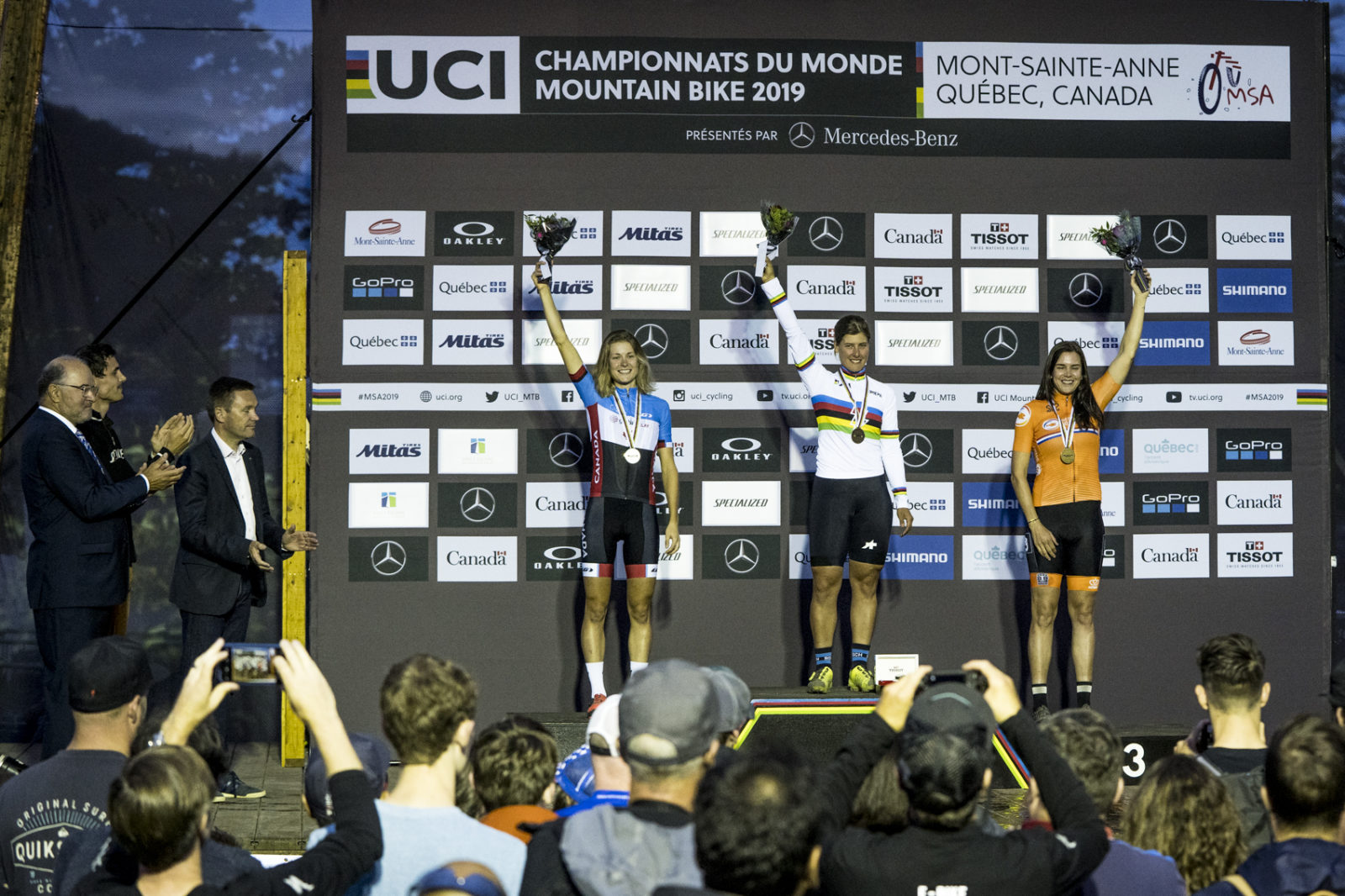 After 30 years of UCI MTB World Championships, a new discipline has joined the ranks. E-MTB is a now a full fledged category, complete with the coveted rainbow jersey up for grabs. Taking the inaugural win in the womens category was Switzerland’s own Nathalie Schneitter, taking a strong win aboard her Trek e-bike.