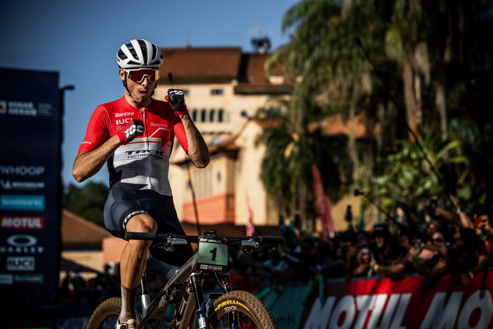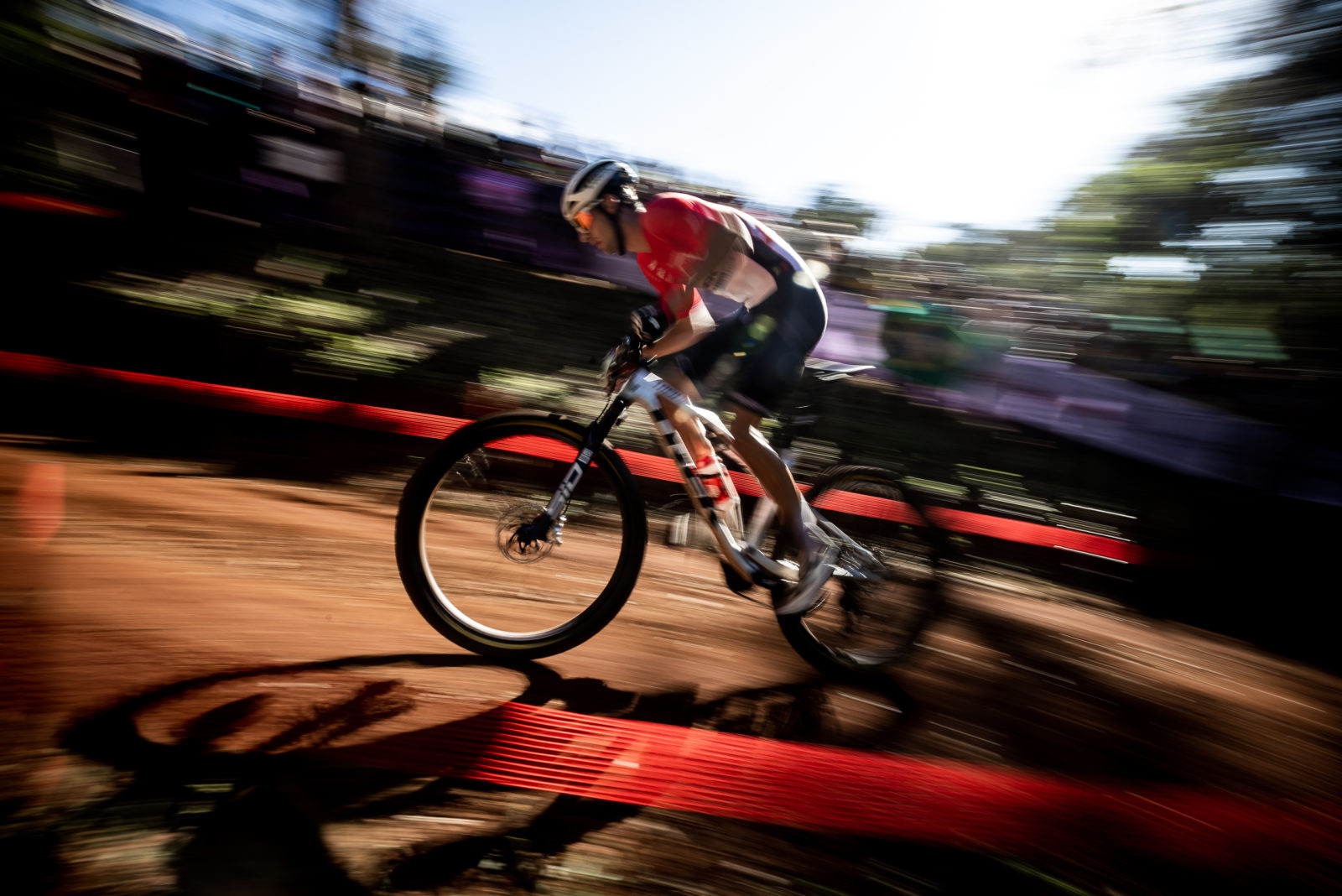 After sweeping both men’s U23 short track and Olympic-distance in Mairiporã, Amos repeated the feat in Araxá in similar fashion. At both venues, he simply outlasted and outgrinded his rivals on two very hot, difficult tracks. During Sunday’s XCO, he separated himself on the fifth of seventh laps, putting a three-second gap on Finn Treudler, who had been the only rider to stay with Amos in the early going. He kept the Swiss rider at arm’s length the rest of the way to complete the double.