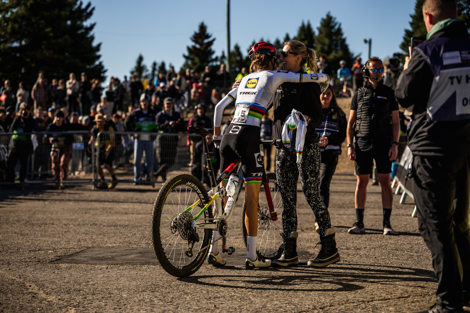 Richards wasn’t the only Trek athlete to crush the weekend. Lidl-Trek’s Isabella Holmgren swept women’s U23 racing, taking her fifth and sixth World Cup wins of the season in dominant fashion. We’re used to watching the back-to-back XCC and XCO U23 world champion put on a show, but this weekend was particularly special for her. It’s not every day that you get to win on home soil. And the Canadian crowd was out in full force for her.