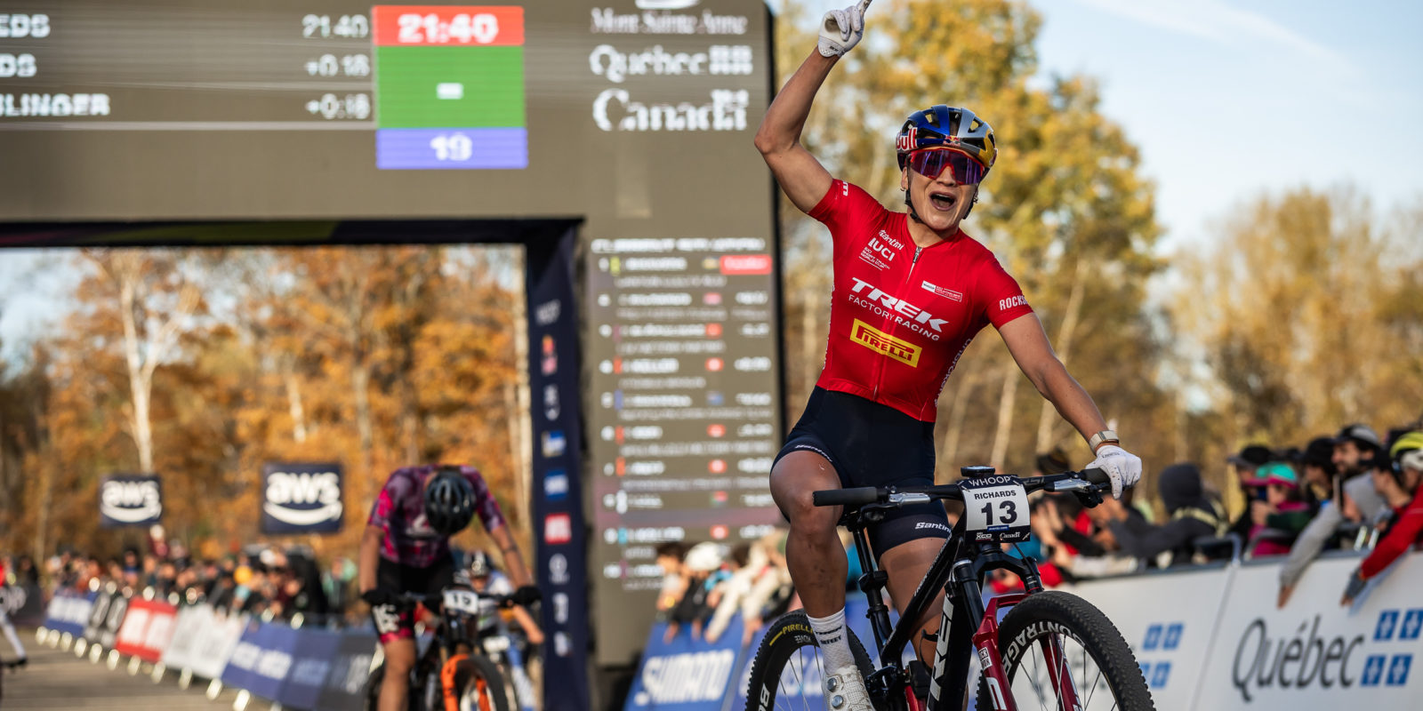 Not a bad way at all. Richards finished the season fourth on the overall XCO standings, another marker of a strong season. She had 10 World Cup podiums on the season — seven in short track, three in XCO — including back-to-back short track wins to open the season in Brazil. Her Sunday performance in Mont-Sainte-Anne was the cherry on top.